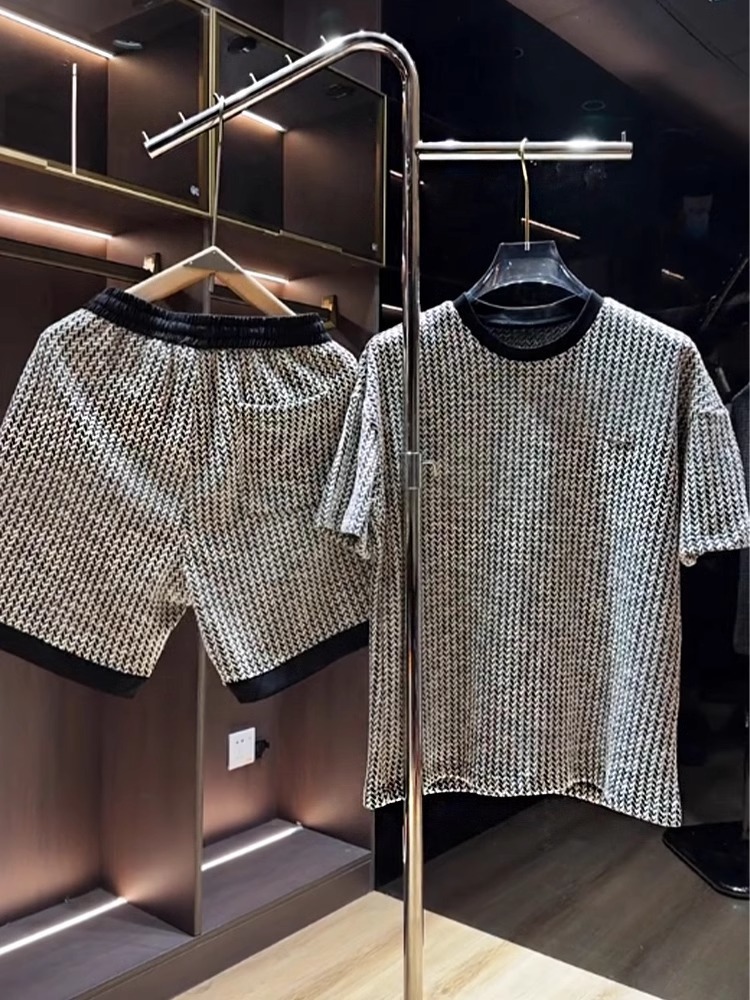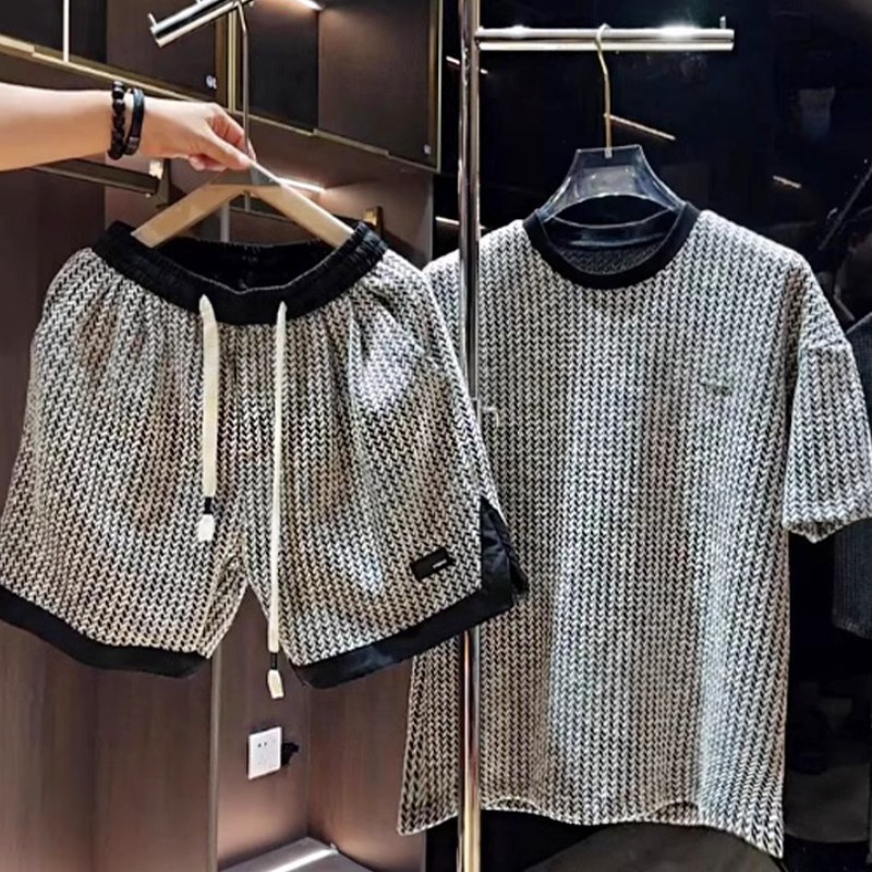 여름 새로운 줄무늬 세트 남자의 간단한 다재다능한 짧은 소매 반바지 ruffian 잘 생긴 패션 캐주얼 스포츠 세트