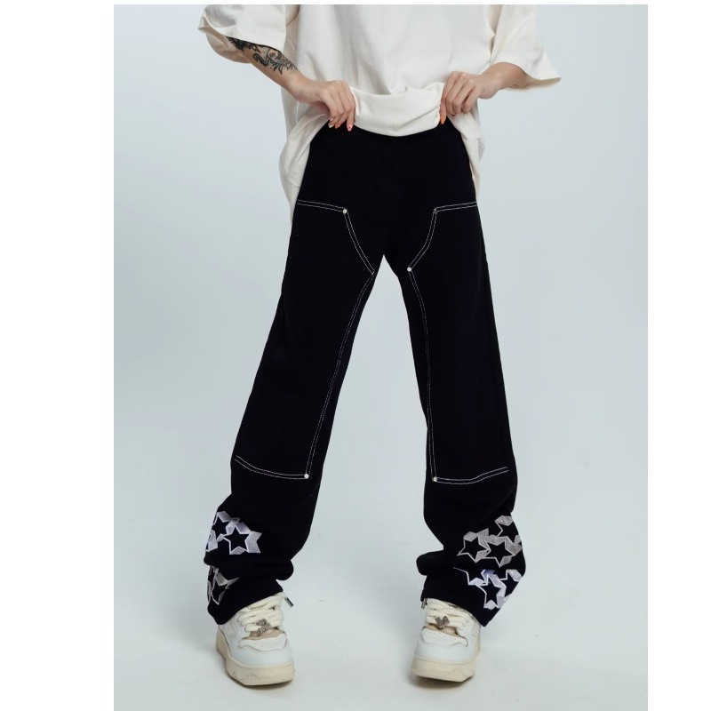 블랙 로깅 툴링 청바지 여름 얇은 가을 트렌디 한 청소년 중장 허리 정사이즈 마이크로 탄성 하이 스트리트스토어 가기