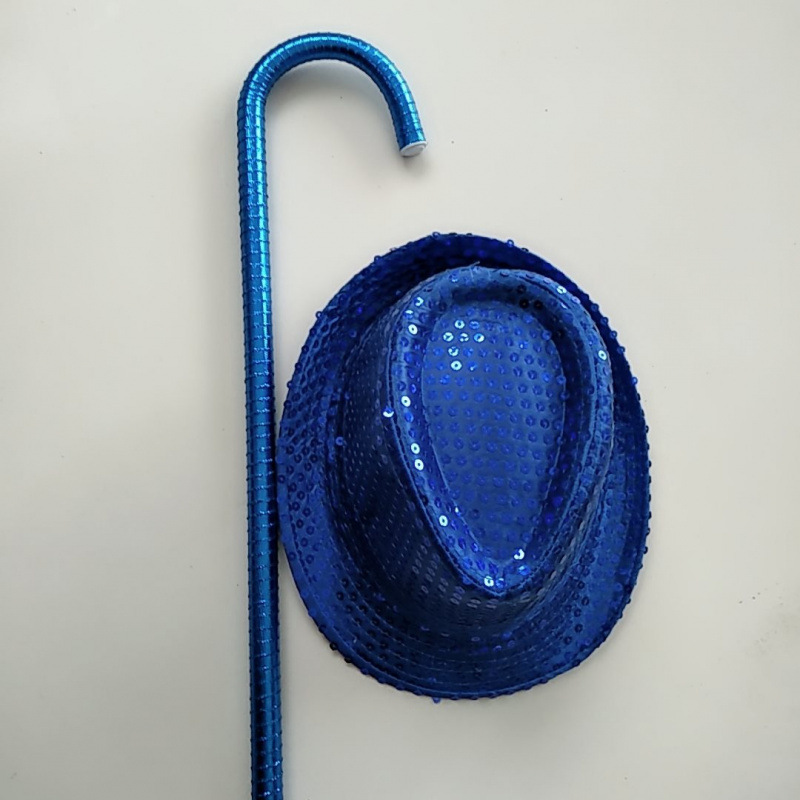 성인 어린이 재즈 댄스 목발 소품 댄스 댄스 버팀목 모자 세트 스팽글 벨리 댄스 스틱 워킹 스틱