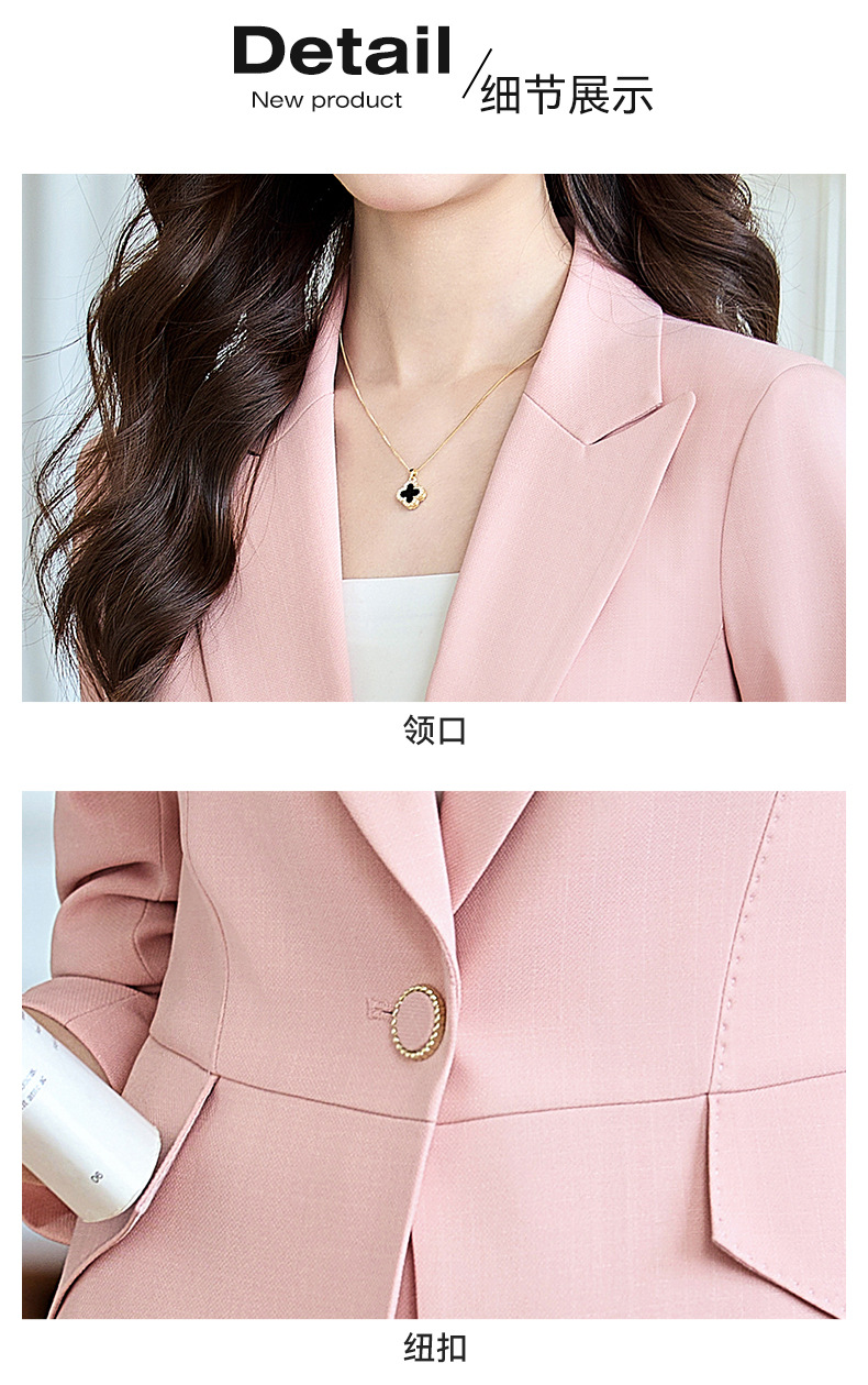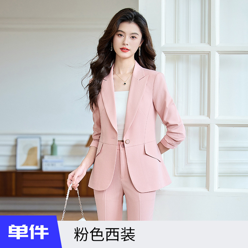 2025 새로운 핑크 세트 세트 여성 시니어 전문 기질 방송 진행자 미술 시험 원피스 세트 재킷