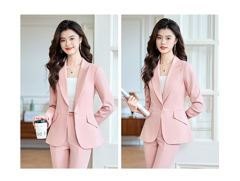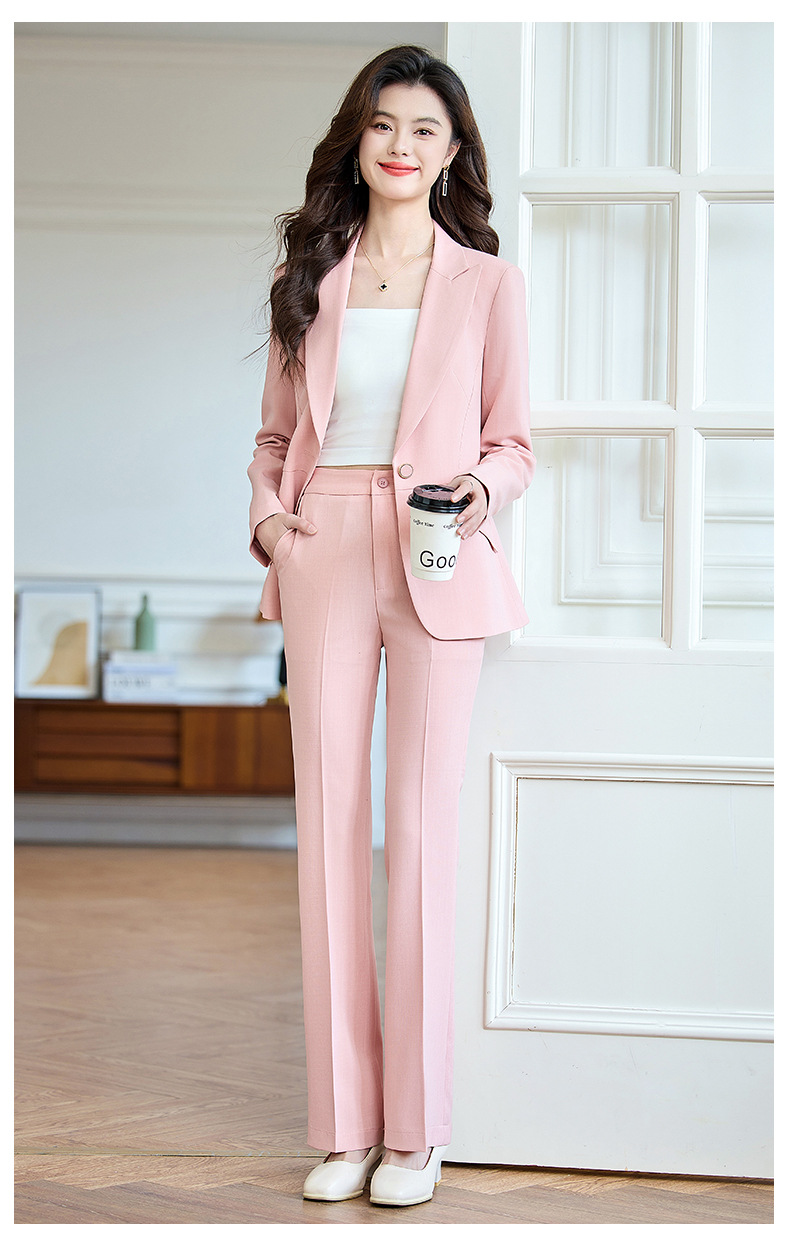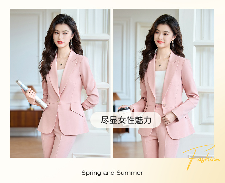 2025 새로운 핑크 세트 세트 여성 시니어 전문 기질 방송 진행자 미술 시험 원피스 세트 재킷스토어 가기