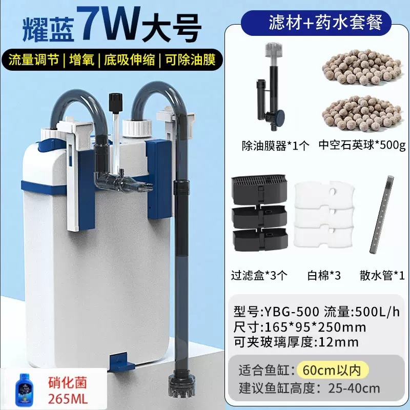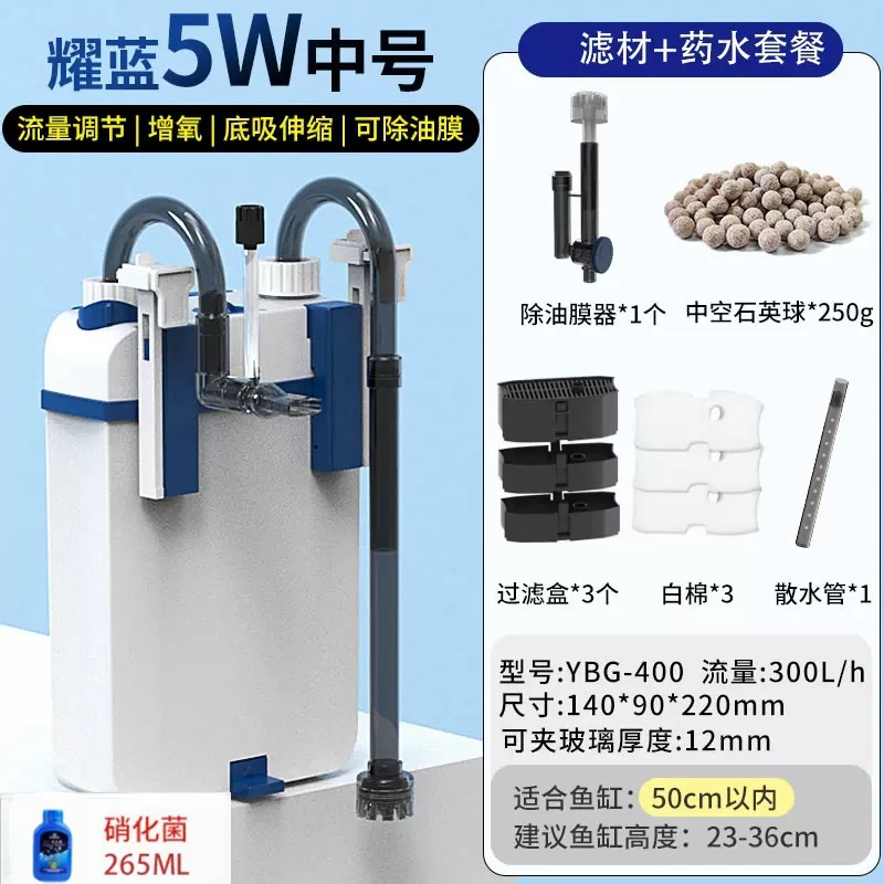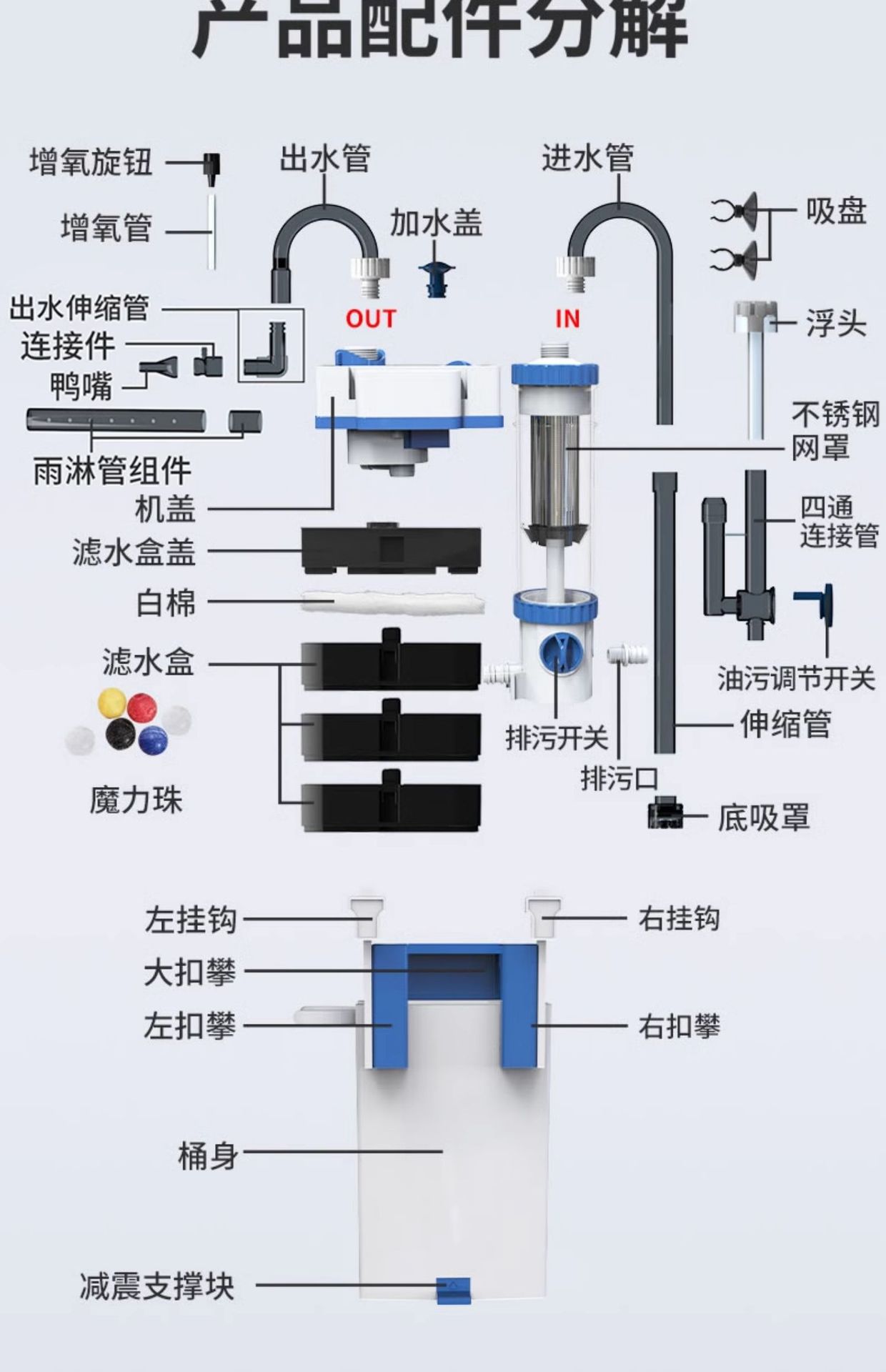 • [물고기 똥 수집 + 원클릭 하수 배출] 6w 벽걸이 필터 + 하수 배출관 (4인용)