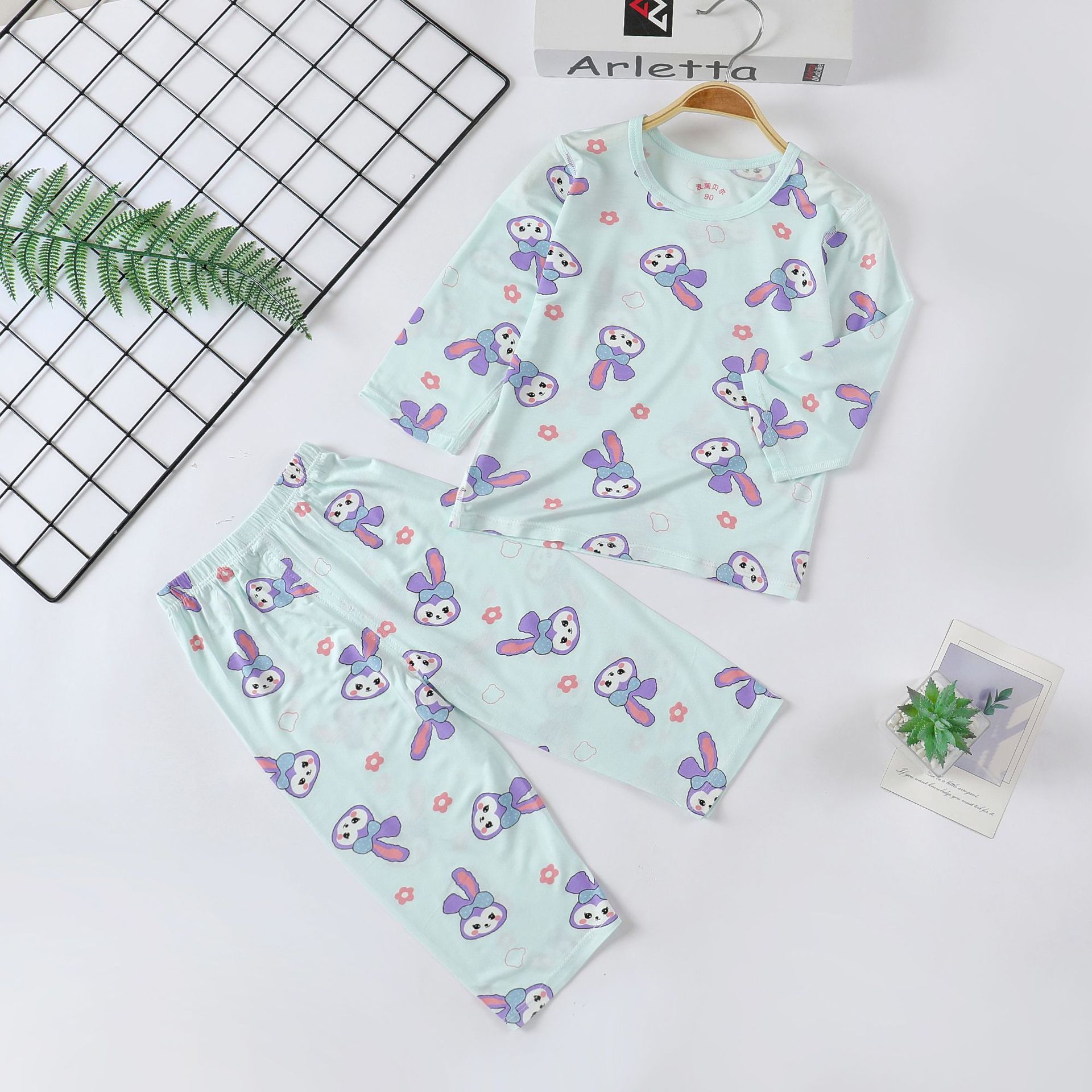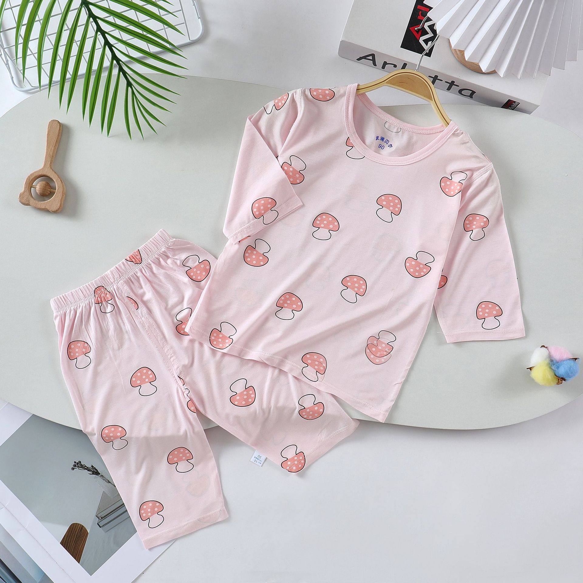 2025 여름 새로운 소년과 소녀 모달 홈 옷 아기 쿨 잠옷 얇은 Youcan 실크 속옷 세트