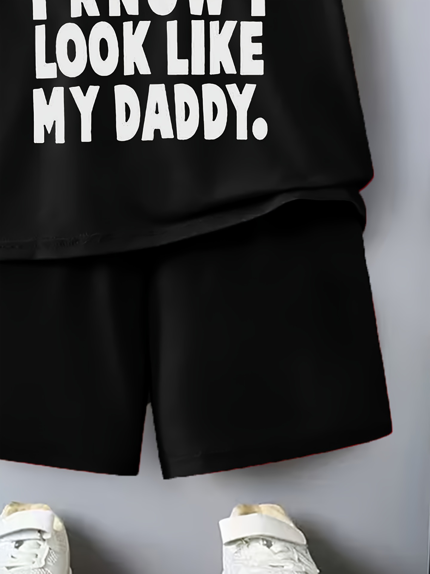 소년의 투피스 캐주얼 세트 블랙 후드 모노그램 인쇄 다목적 반팔 티셔츠와 반바지스토어 가기