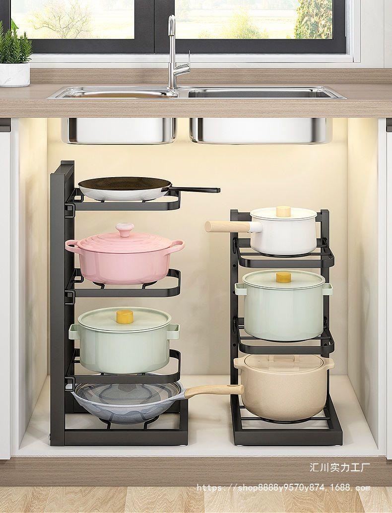 주방 냄비 랙 다층 저장 랙 다기능 저장 냄비 랙 수중 바닥 테이블 탑 냄비 랙 캐비닛스토어 가기