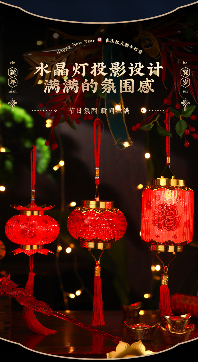 -2025 년 새해 랜턴 도매 휴대용 빛나는 빨간색 프로젝션 어린이 diy 새해 펜던트 봄 축제 장식품