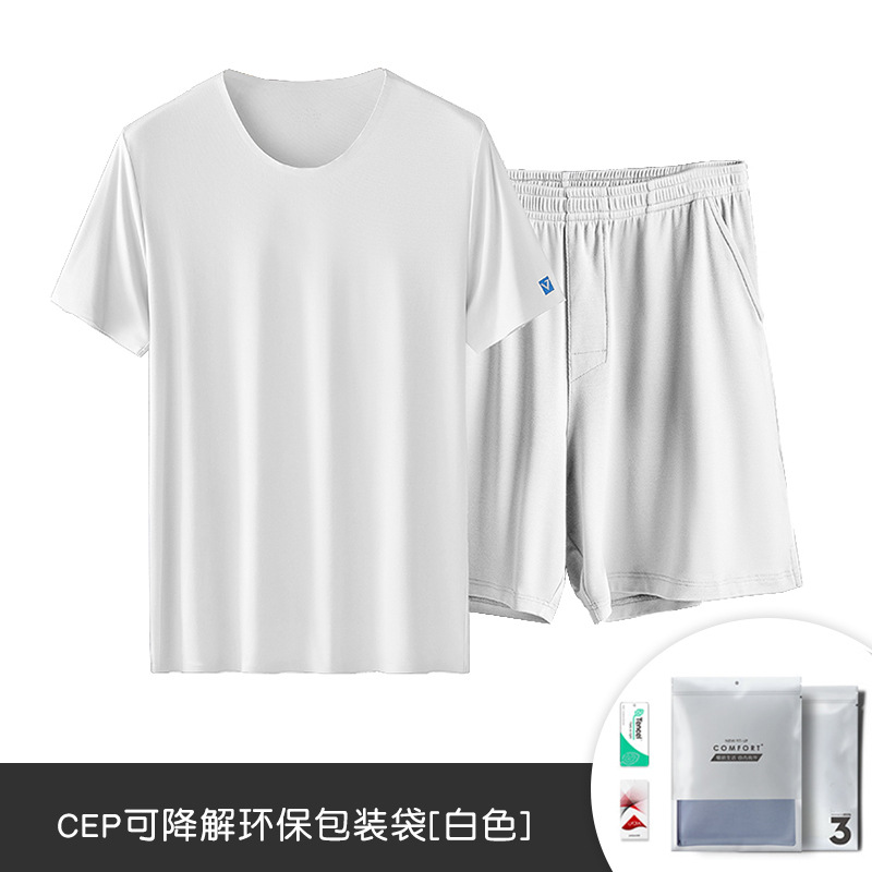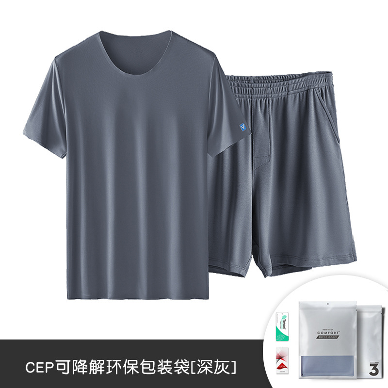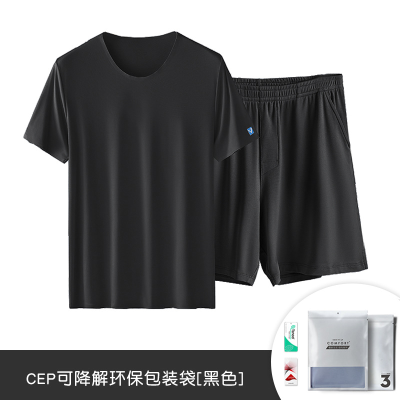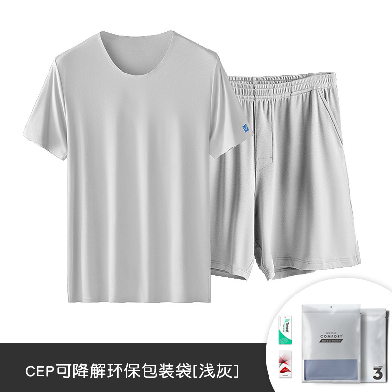 80 아이스 실크 모달 봄 및 여름 반팔 반바지 세트 남성용 생 파자마 겉옷 남성용 홈 의류 재고