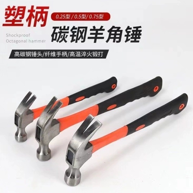 新款防滑羊角锤铁锤一体实心专用木工高碳钢羊角锤子起钉锤