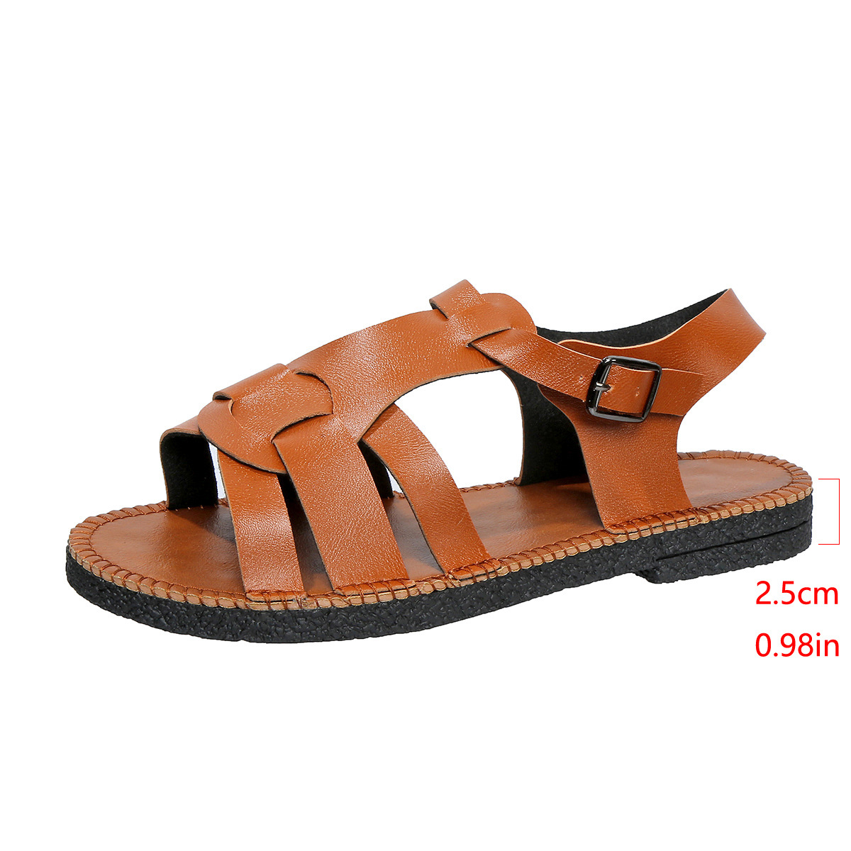대외 무역 플러스 사이즈 새로운 벨트 버클 플랫 할로우 샌들 여성 레트로 스타일 외부 착용 솔리드 컬러 비치 샌들 소원스토어 가기