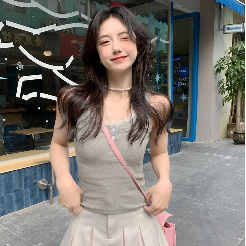레이스 레이스 페이크 투피스 I 자형 조끼 여성 여름 새로운 슬림핏 스파이스 걸 쇼트 탑 여성 트렌디스토어 가기