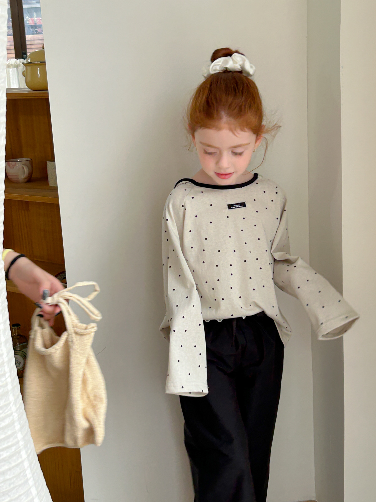 2025 여름 새 소녀 중소 어린이 웨이브 포인트 얇은 모자 긴 소매 티셔츠 여성의 봄과 가을베이스 셔츠스토어 가기