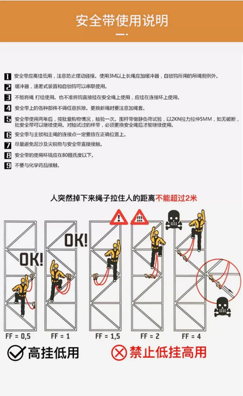 야외 안전 벨트 연결 로프 높은 고도 작동 완충 내마모성 후방 안전 로프가있는 낙하 플랫 벨트 안전 로프