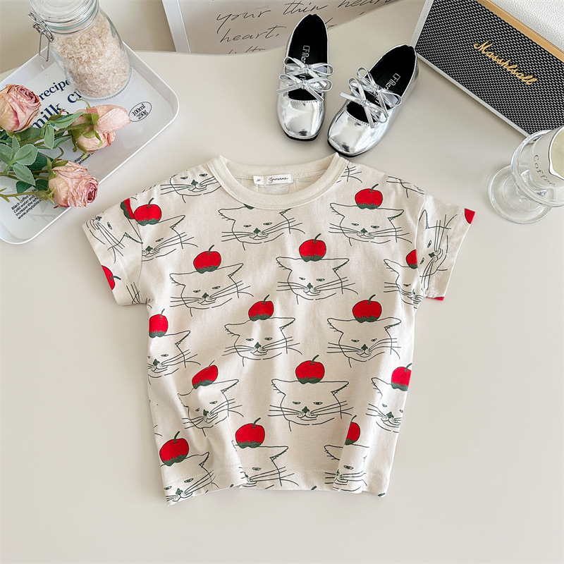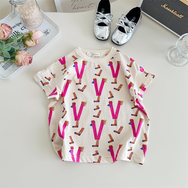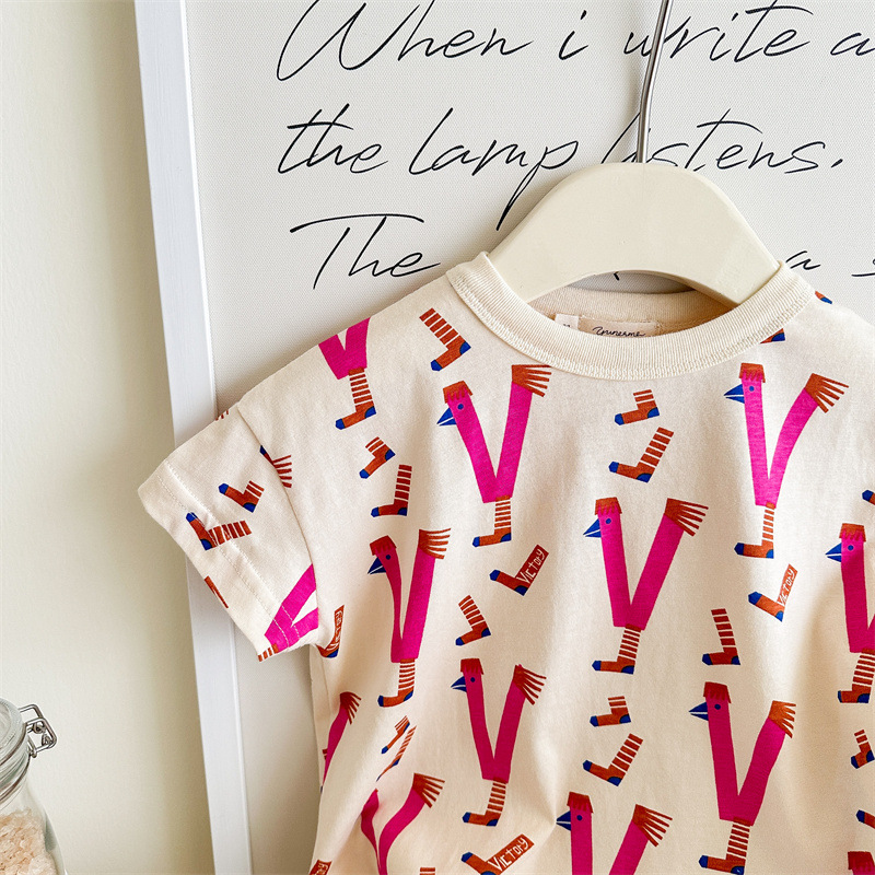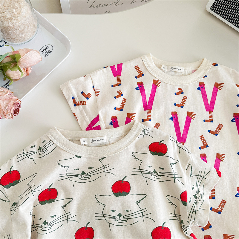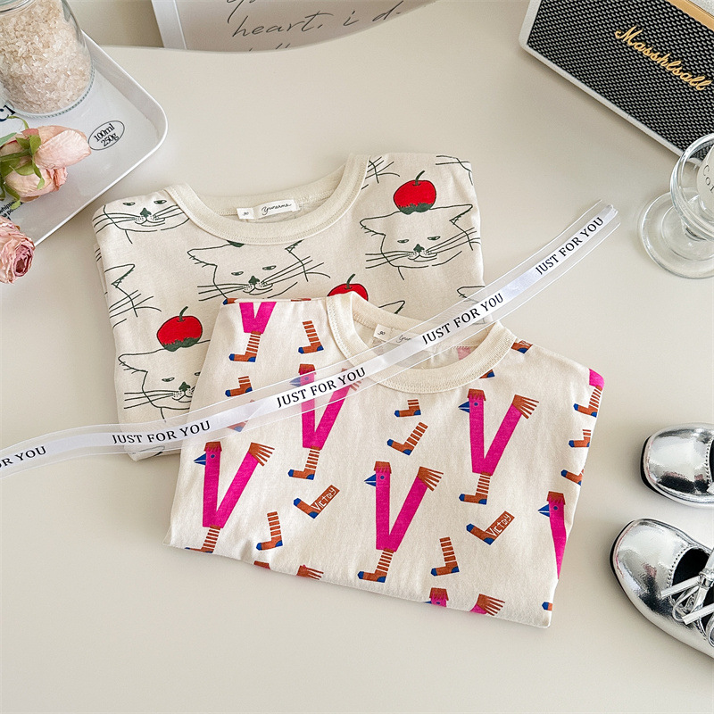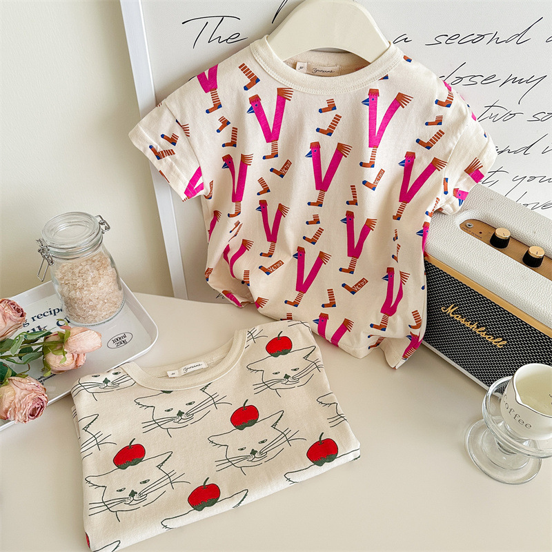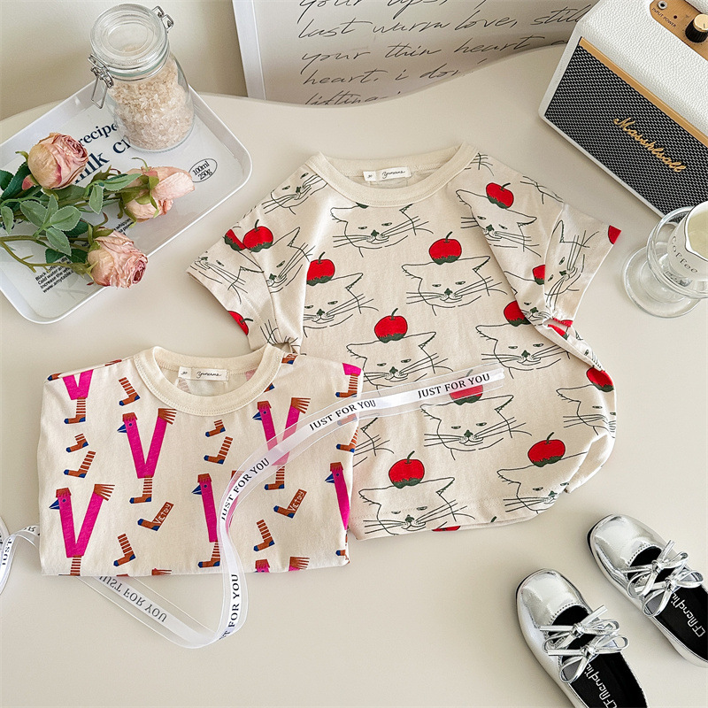 Tong Xingyuan Girls 여름 인쇄 반팔 전체 길이 만화 인쇄 티셔츠 2025 여름 반소매 아기 소녀 용스토어 가기
