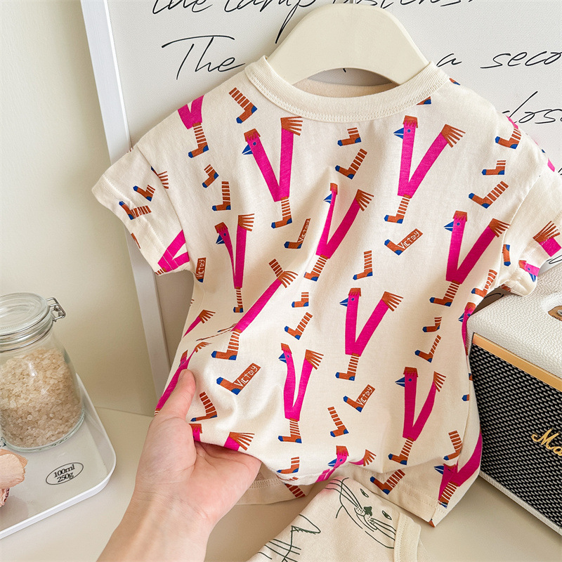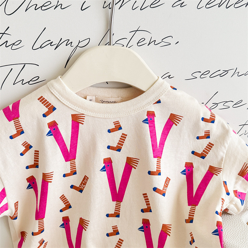 Tong Xingyuan Girls 여름 인쇄 반팔 전체 길이 만화 인쇄 티셔츠 2025 여름 반소매 아기 소녀 용