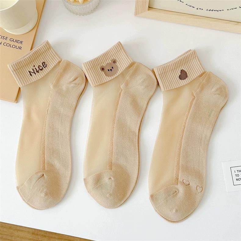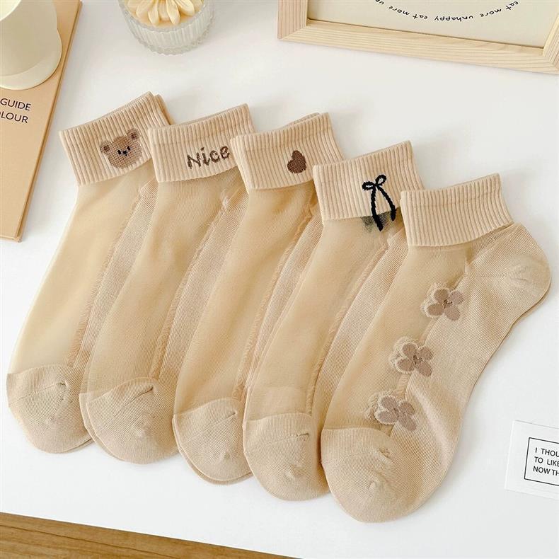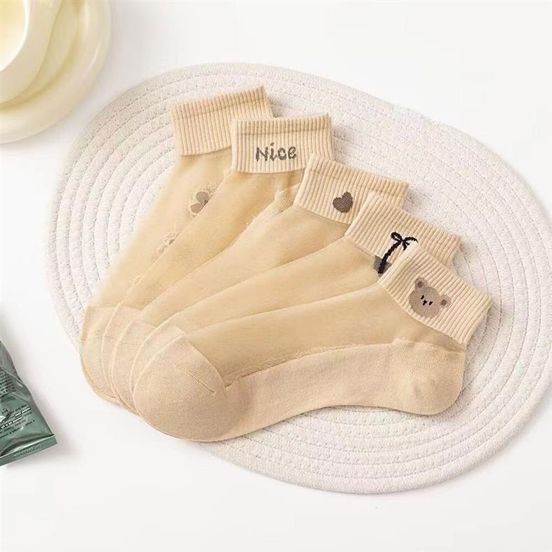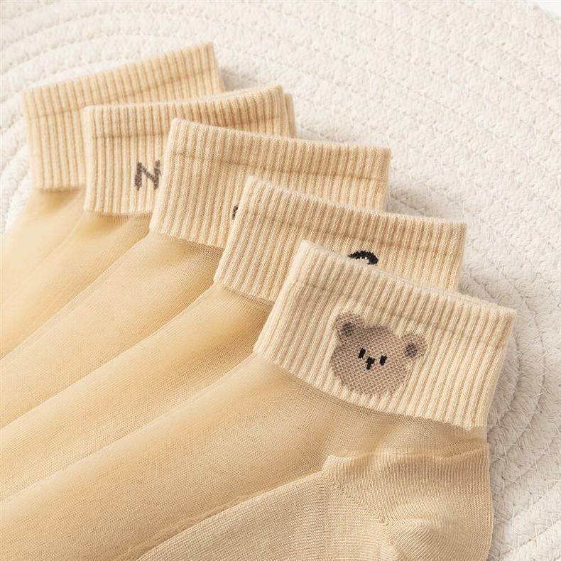 2025 여름 짧은 튜브 다육 여성 양말 면 바닥 크리스탈 실크 얕은 입 Ins 캐주얼 양말 어린이 만화 곰 양말