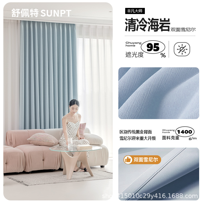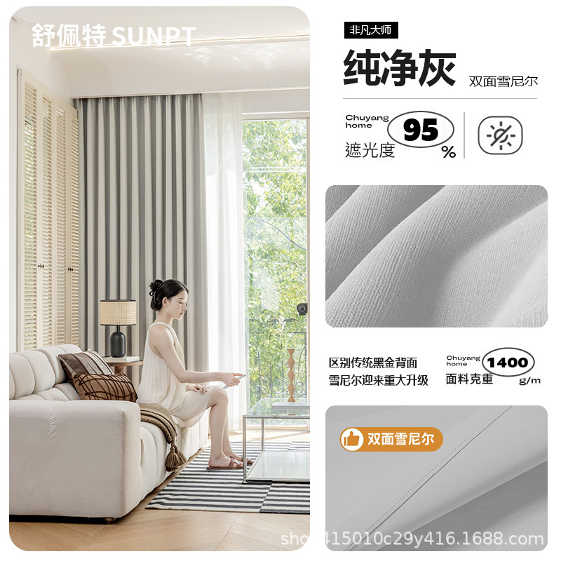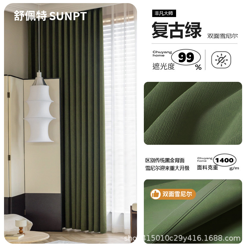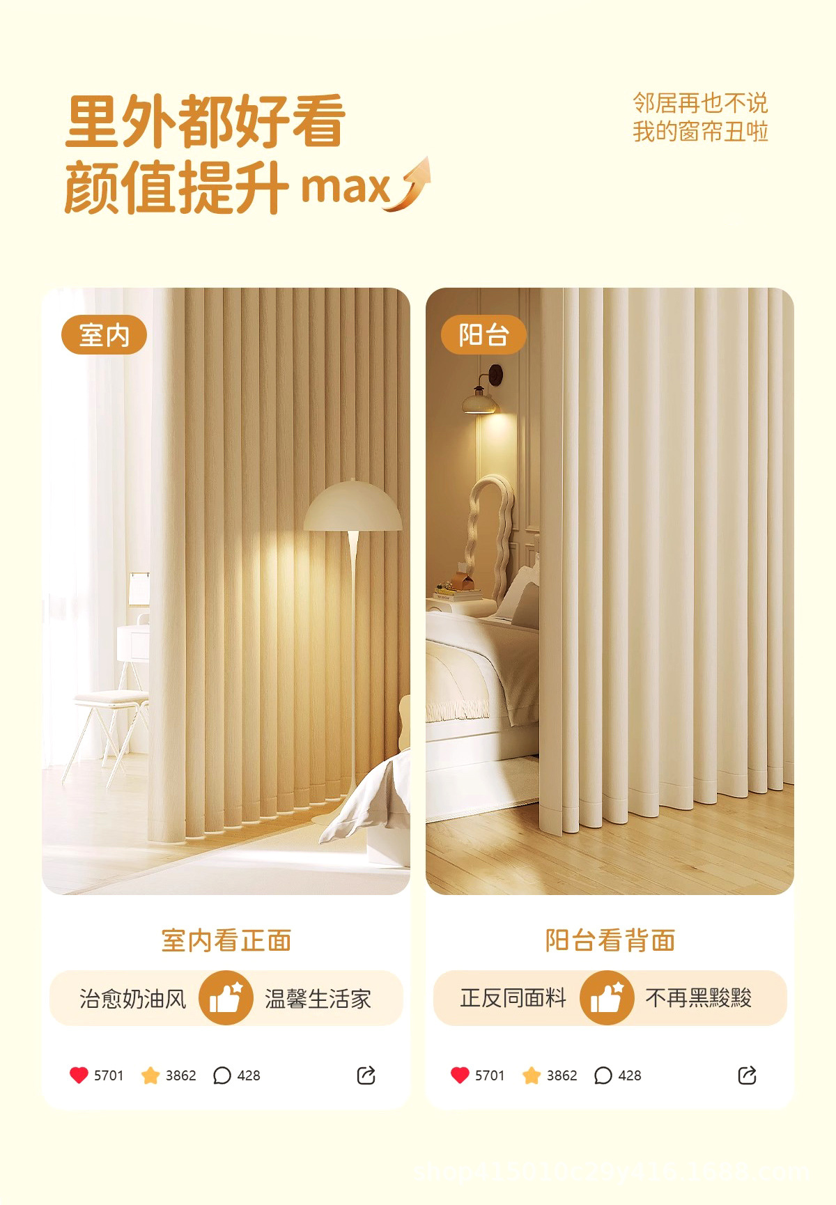 두꺼운 양면 셔닐 모양의 커튼 전체 음영 침실 2025 조명 고급 고급 거실 새로운 현대 크림스토어 가기