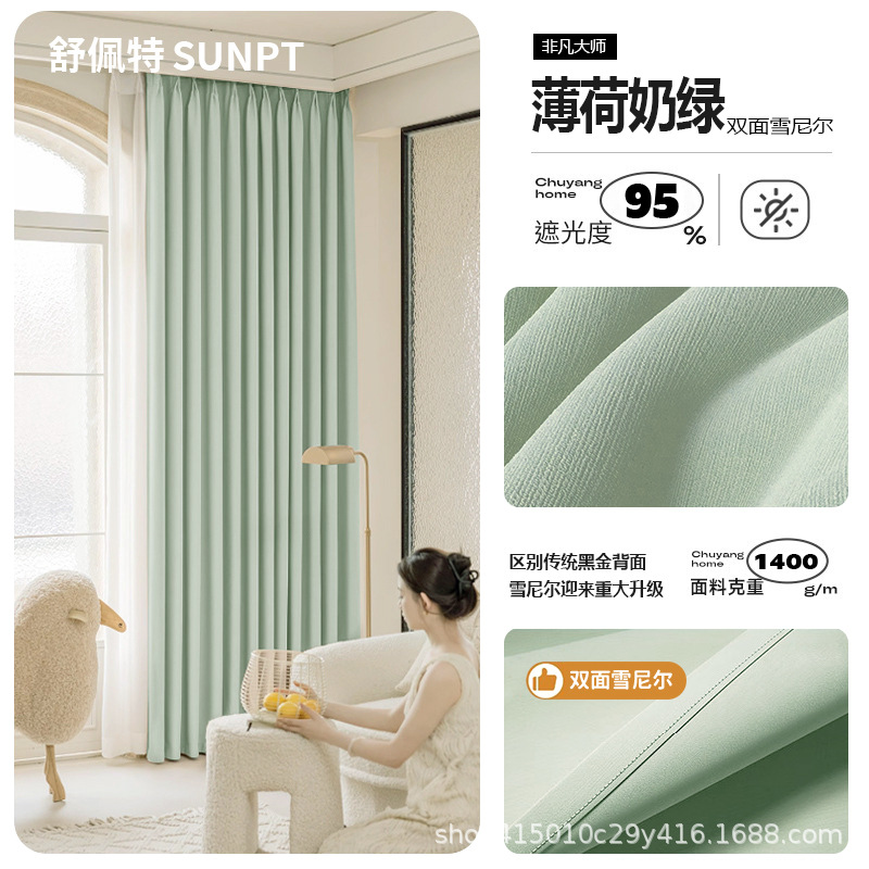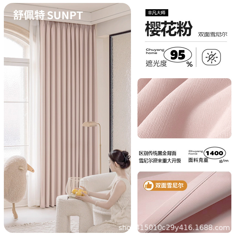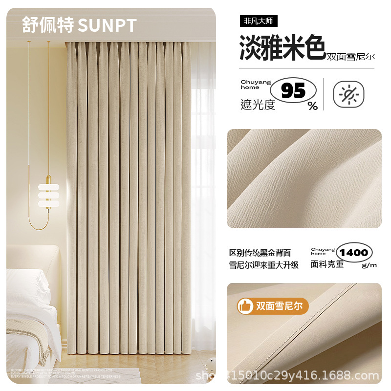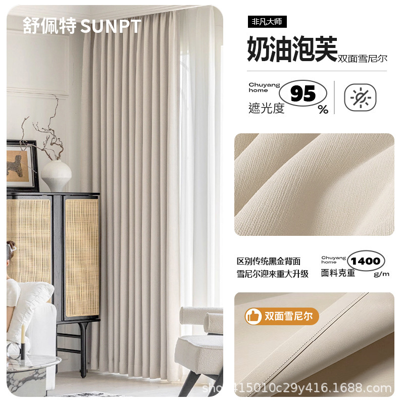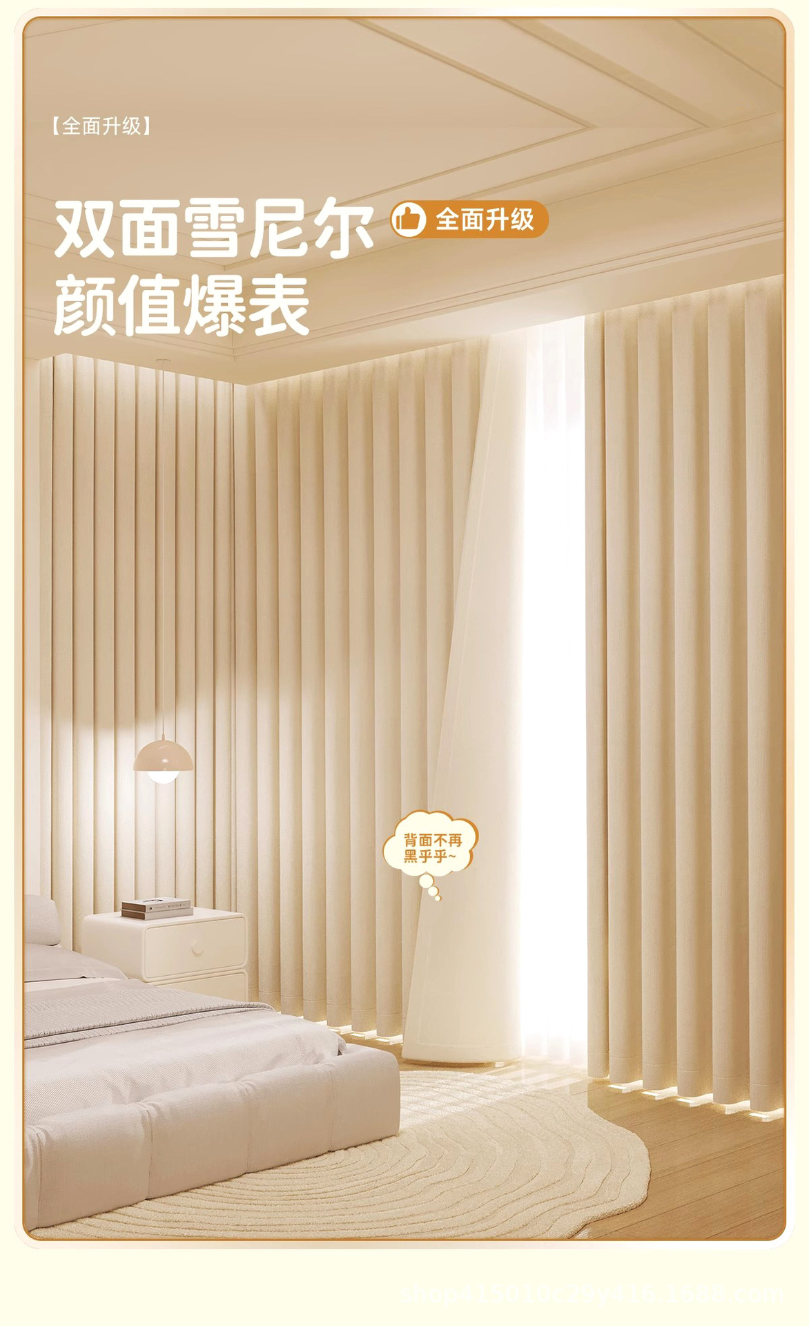 두꺼운 양면 셔닐 모양의 커튼 전체 음영 침실 2025 조명 고급 고급 거실 새로운 현대 크림
