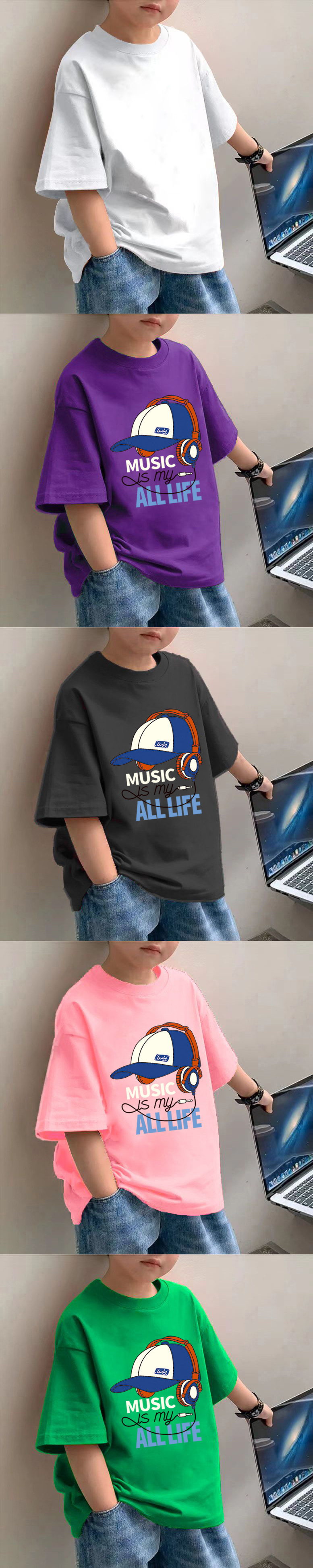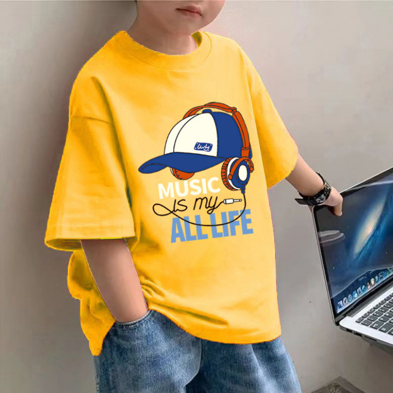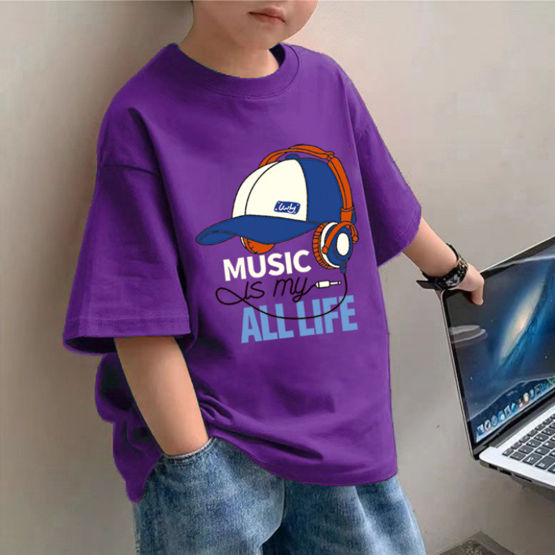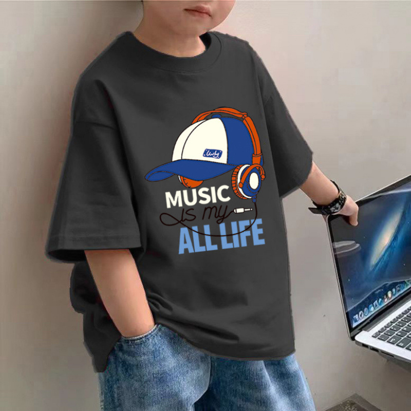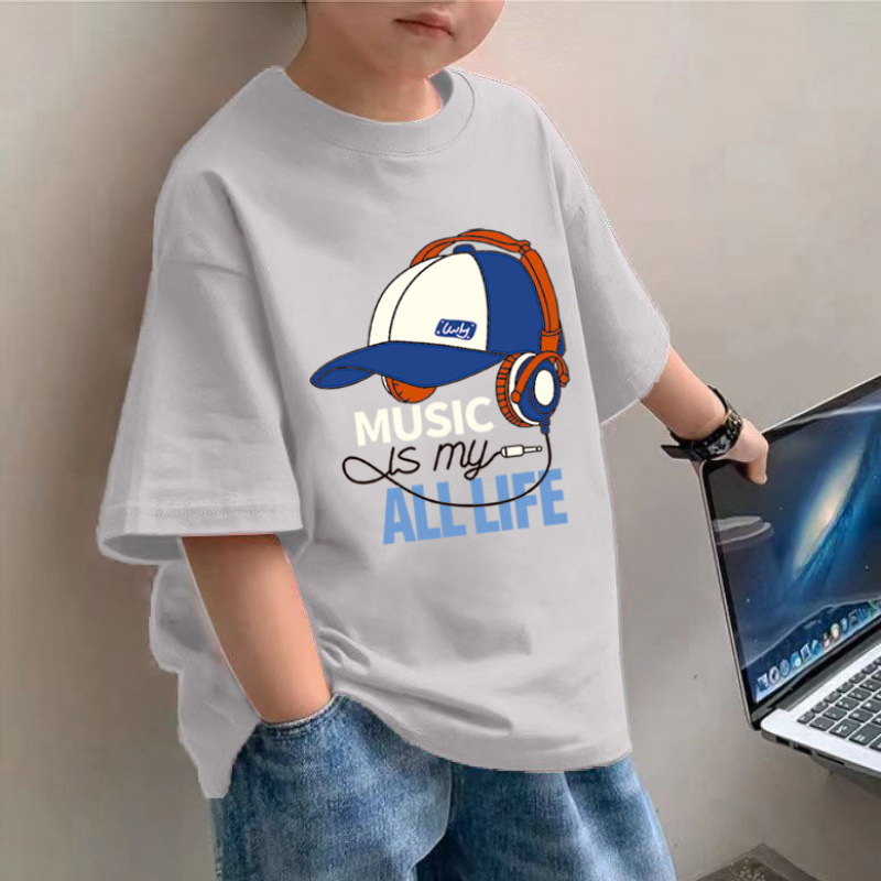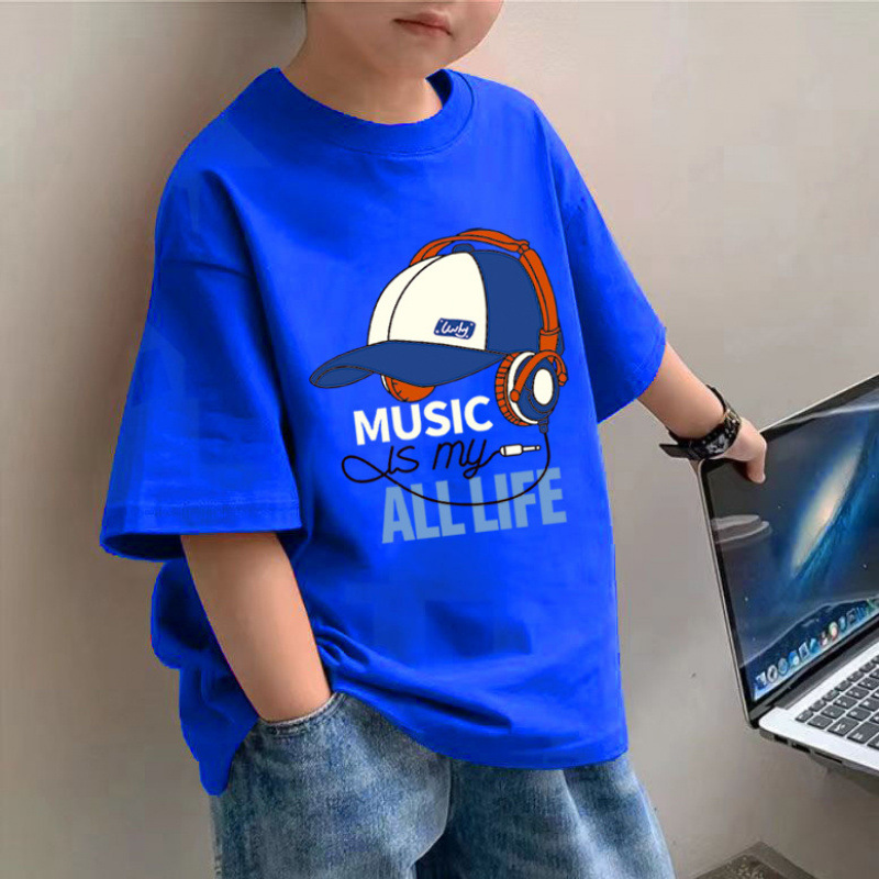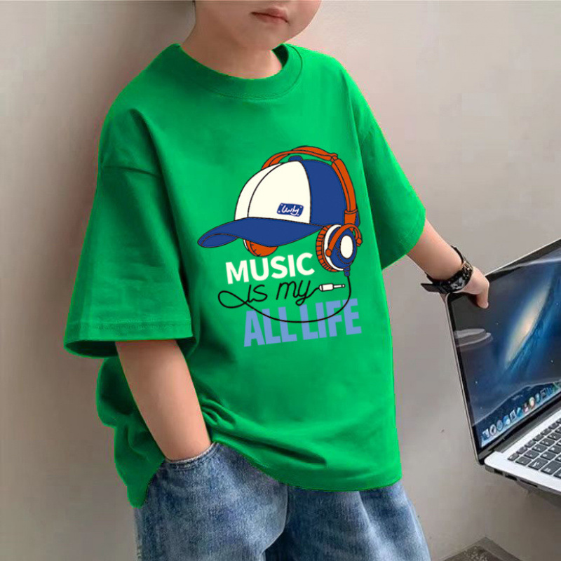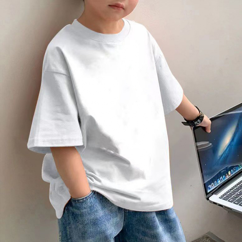 소년 면 얇은 반팔 티셔츠 여름 새로운 느슨한 슬림 모양 큰 아이 유행 거리 탑스토어 가기