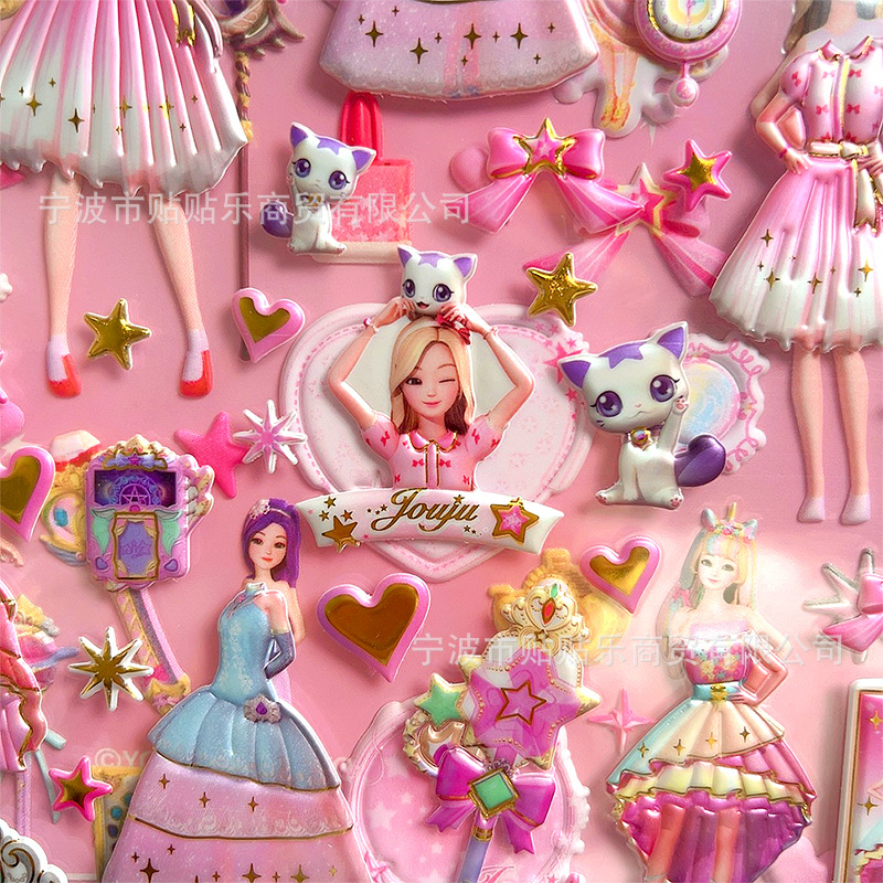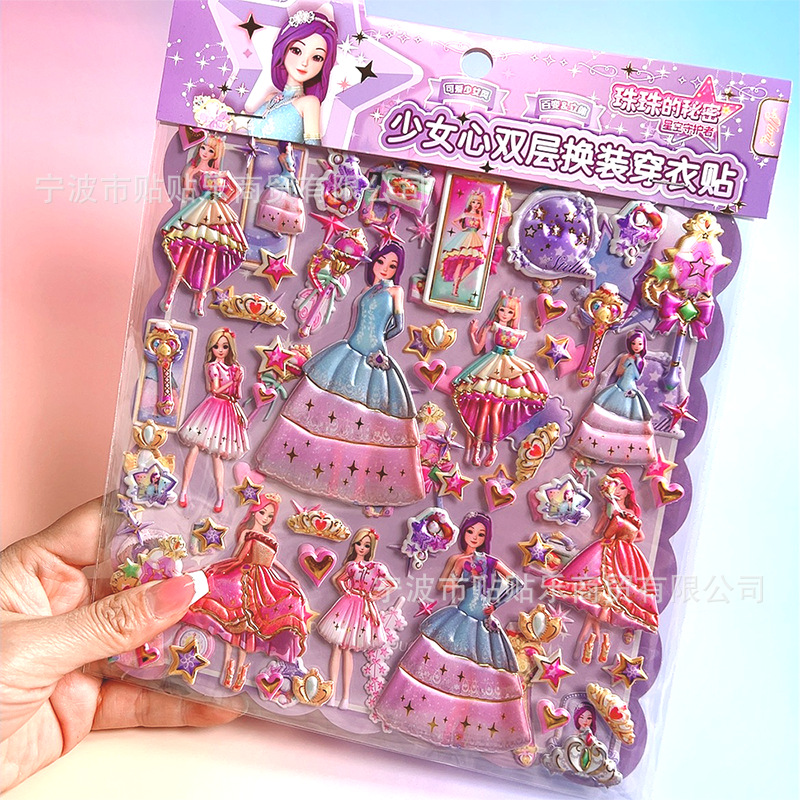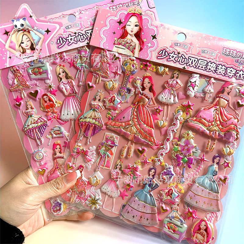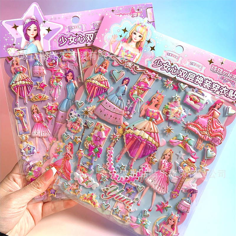 주니어 소녀의 심장 더블 레이어 원피스 드레싱 스티커 3 차원 다이아몬드 원피스 업 스티커 아기 상 스티커 DIY 상 스티커스토어 가기