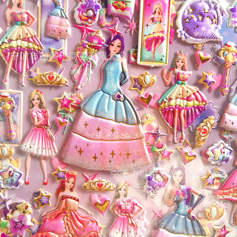 주니어 소녀의 심장 더블 레이어 원피스 드레싱 스티커 3 차원 다이아몬드 원피스 업 스티커 아기 상 스티커 DIY 상 스티커