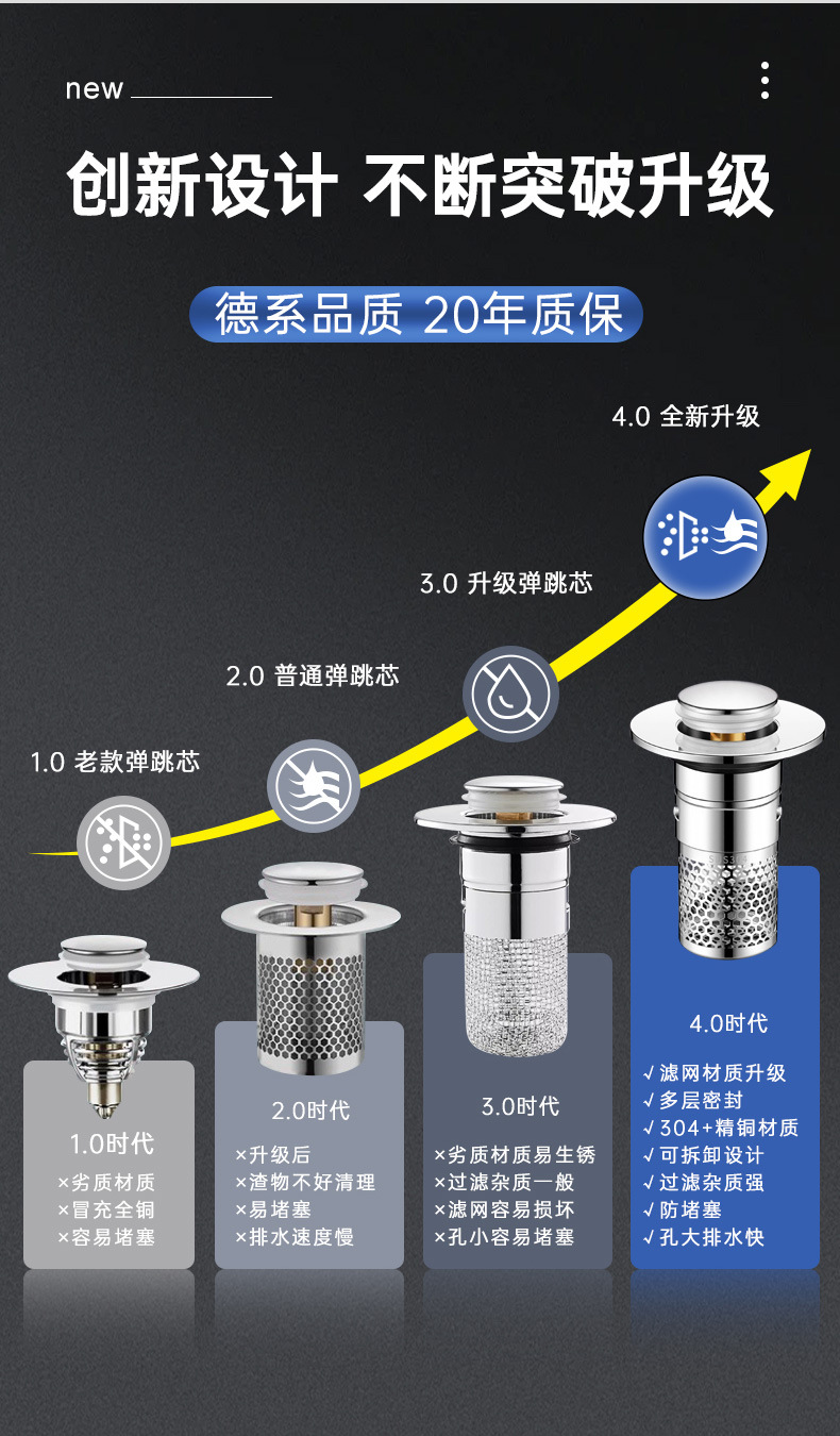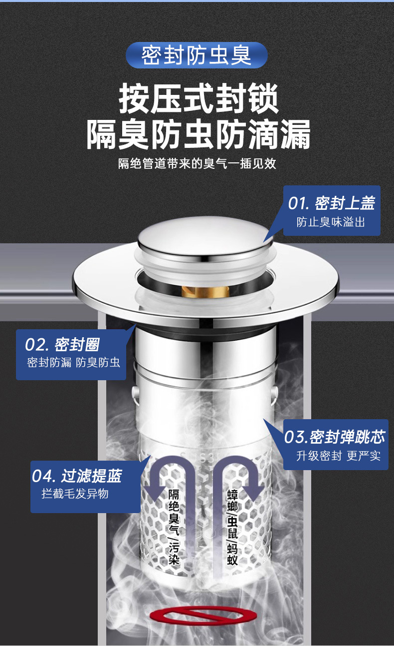 워시 세면기 누출 스토퍼 분지 바운스 코어 프레스 타입 액세서리 탈취제 필터 범용 배수 필터