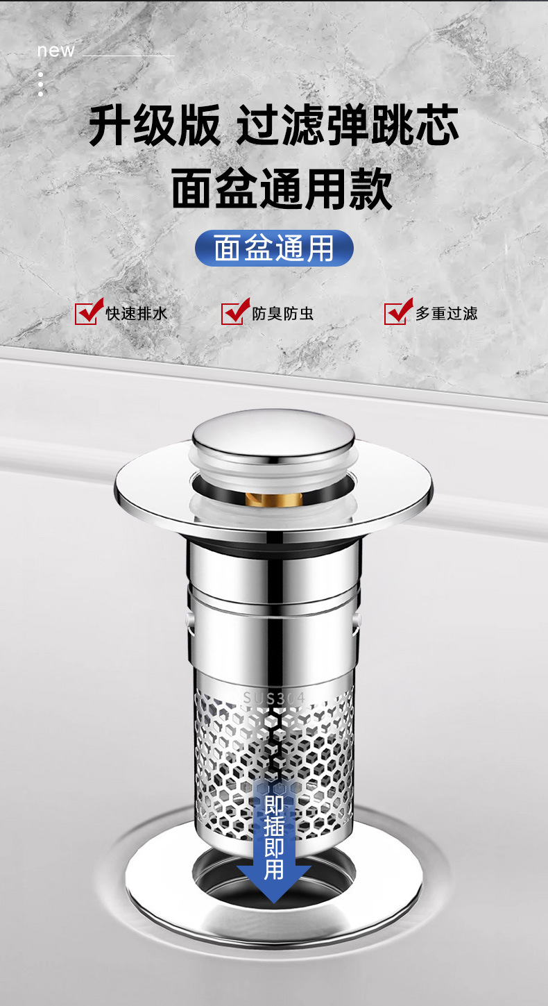 워시 세면기 누출 스토퍼 분지 바운스 코어 프레스 타입 액세서리 탈취제 필터 범용 배수 필터스토어 가기