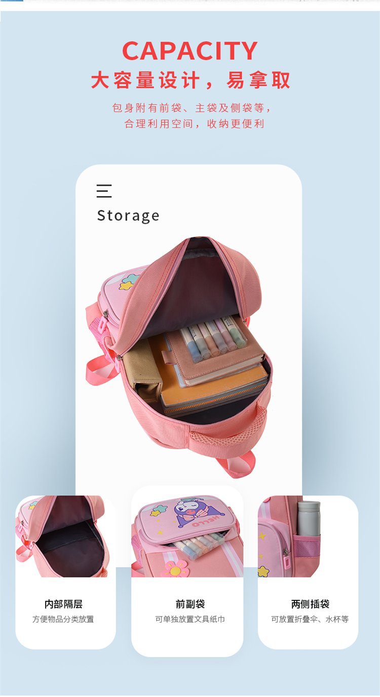새로운 Kulomi Schoolbag 소녀 유치원 중등석 공주 귀여운 소년 3-6 세 방수 배낭
