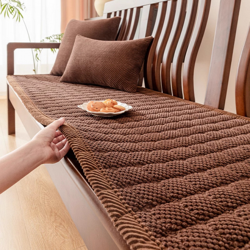 두꺼운 코듀로이 단단한 나무 소파 쿠션 가을과 겨울 미끄럼 방지 마호가니 소파 쿠션 2024 새로운 시트 쿠션