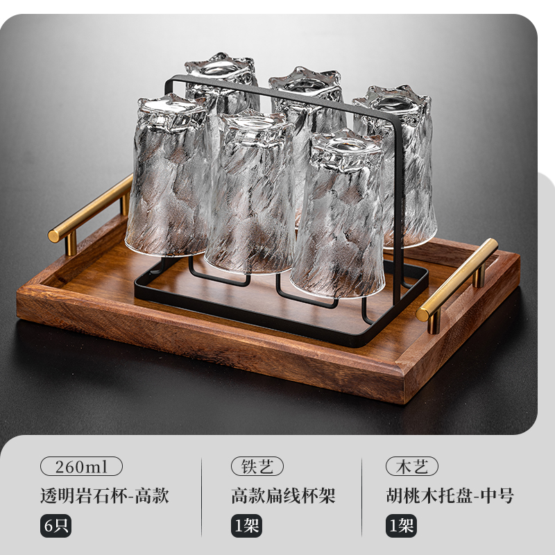 • 260ML 투명 록 키 큰 컵 x6+컵 홀더+호두 트레이