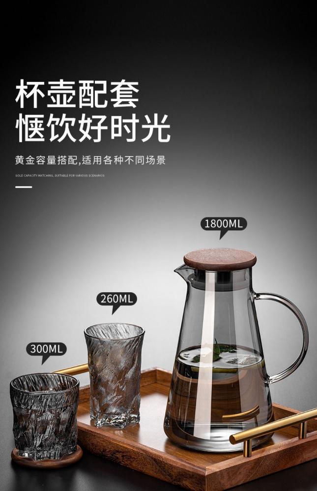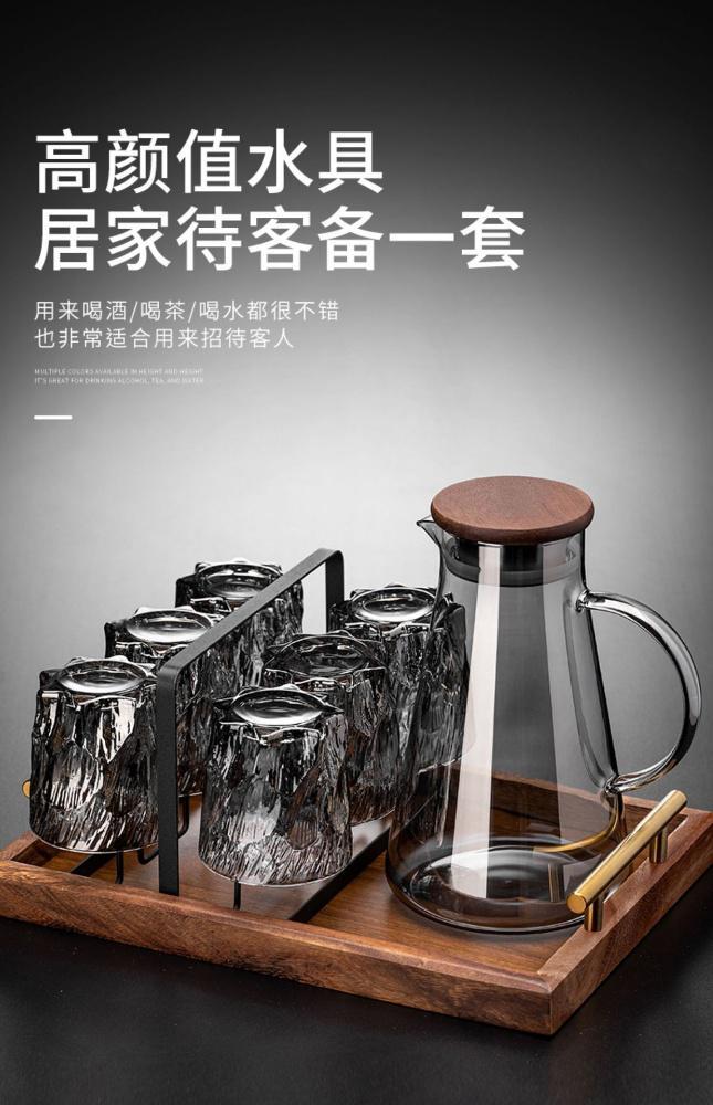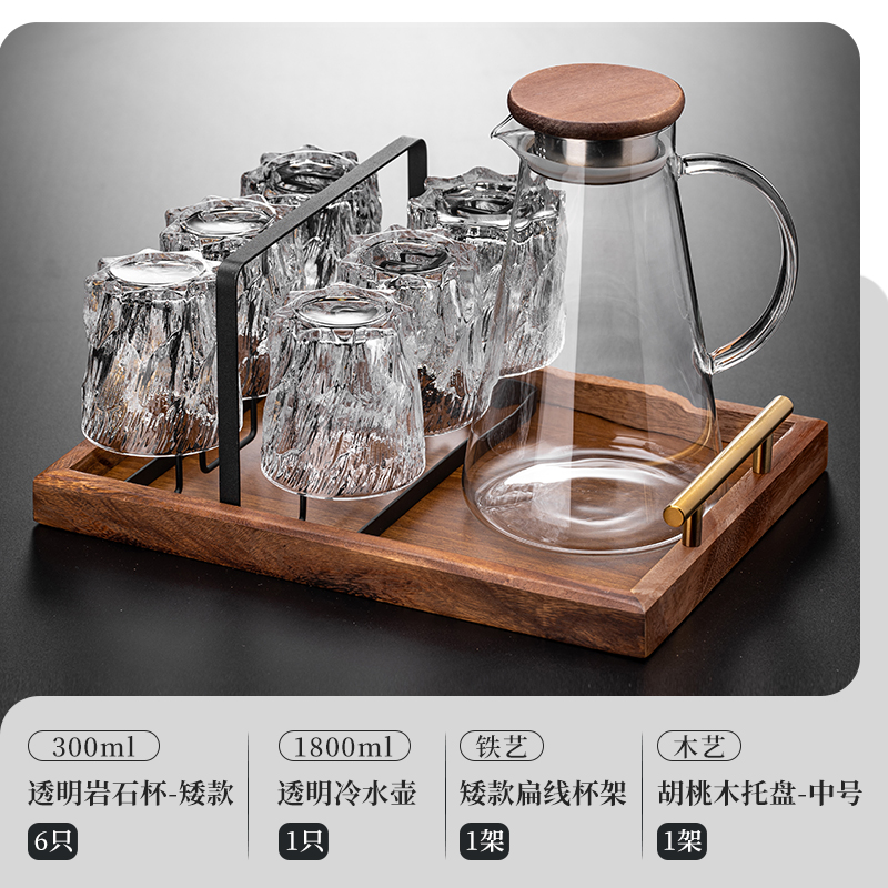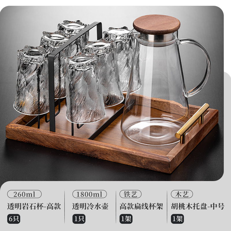 • 260ML 투명 록 키 큰 컵 x6+컵 홀더+주전자+호두 트레이