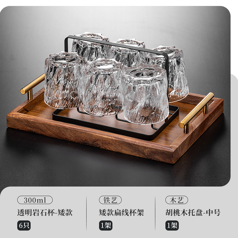 • 300ML 투명 록 쇼트 컵 x6+컵 홀더+호두 트레이