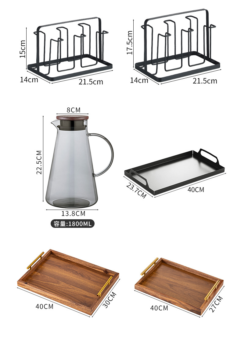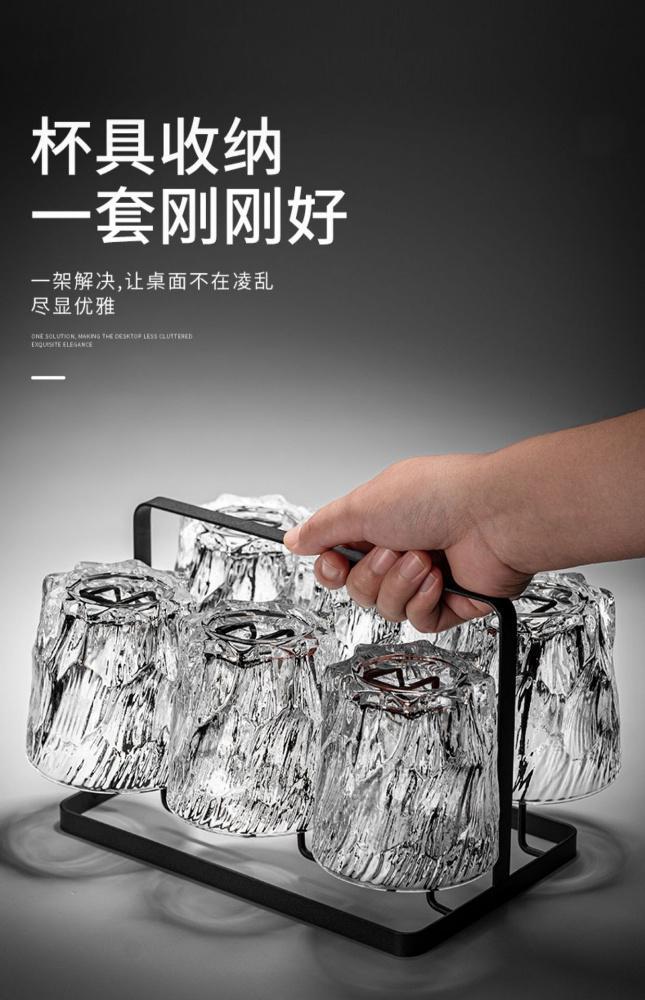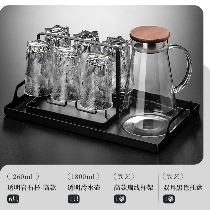• 260ML 투명 록 톨 컵 x6+컵 홀더+주전자+검은 철제 트레이