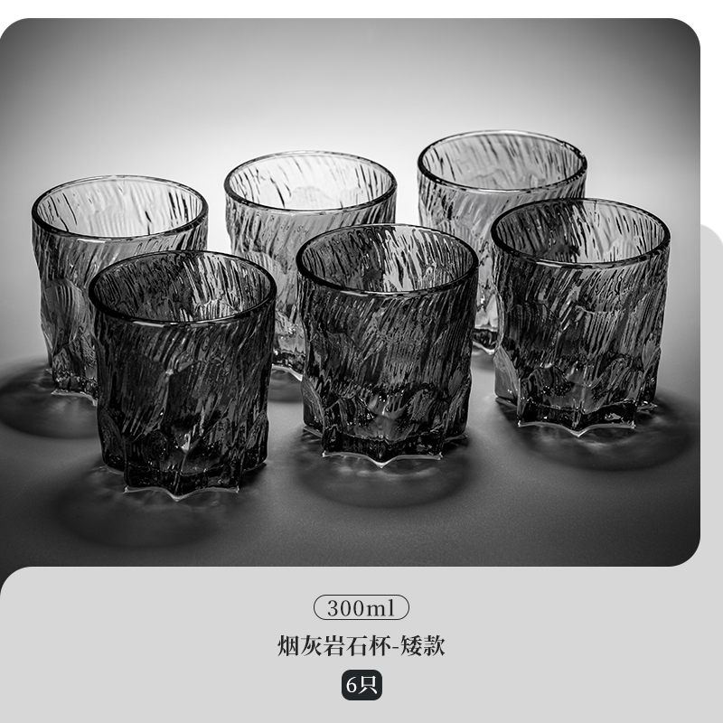• 300ML 스모크 그레이 록 쇼트 컵 x6