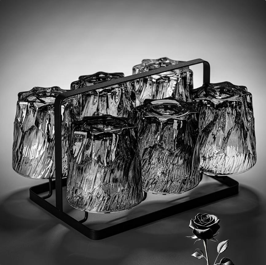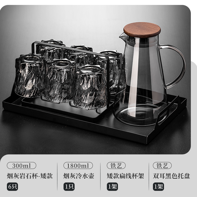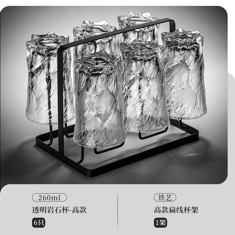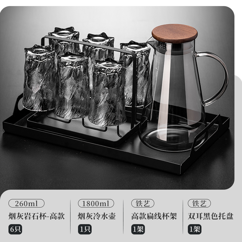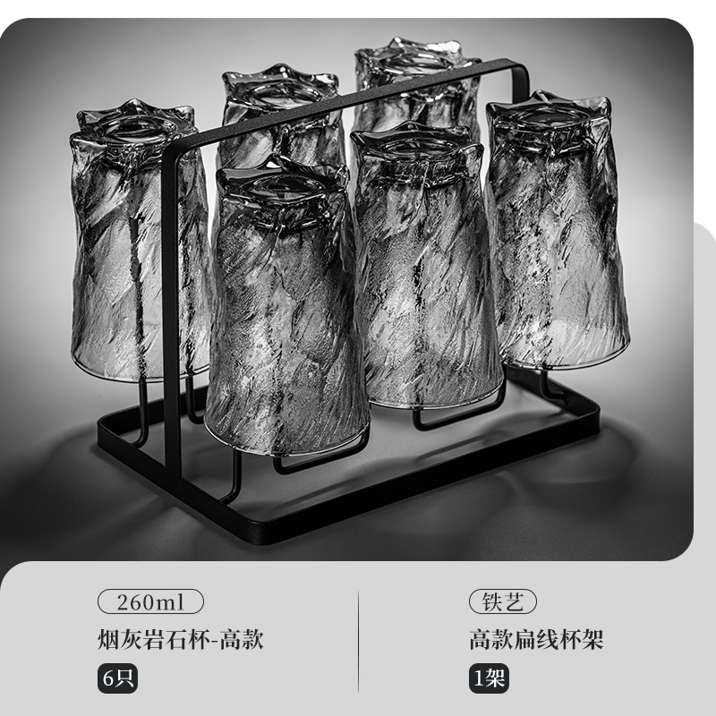 • 260ML 스모크 그레이 록 톨 컵 x6+컵 홀더+주전자+블랙 아이언 트레이