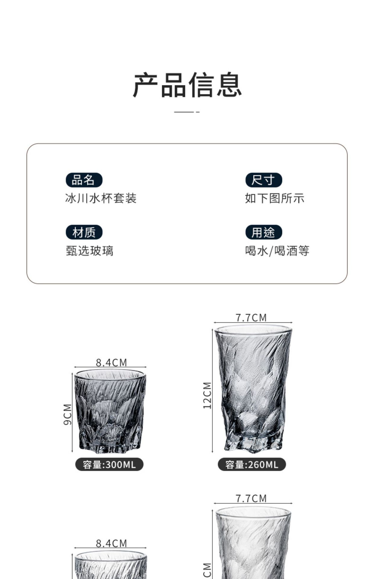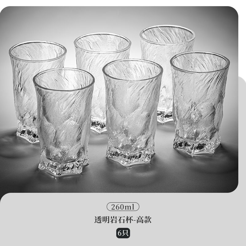 • 260ML 스모크 그레이 록 톨 컵 x6