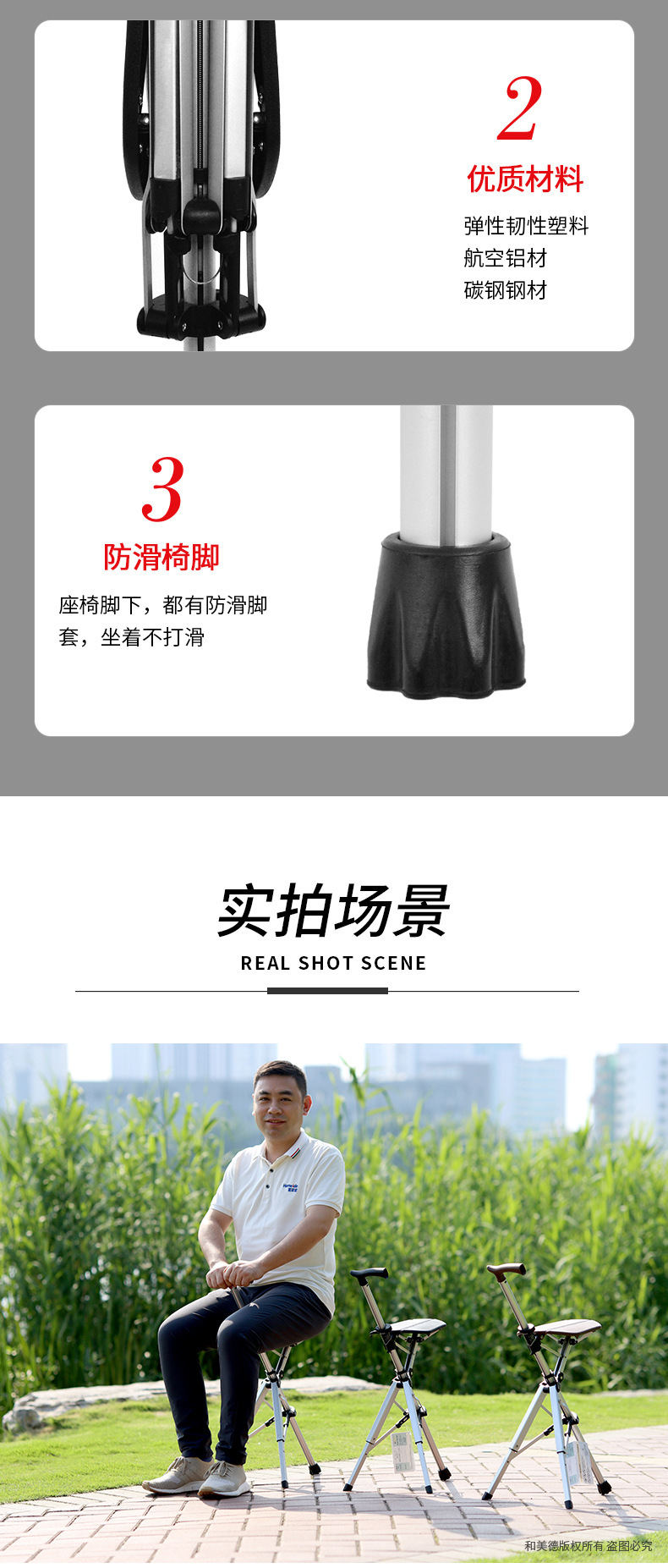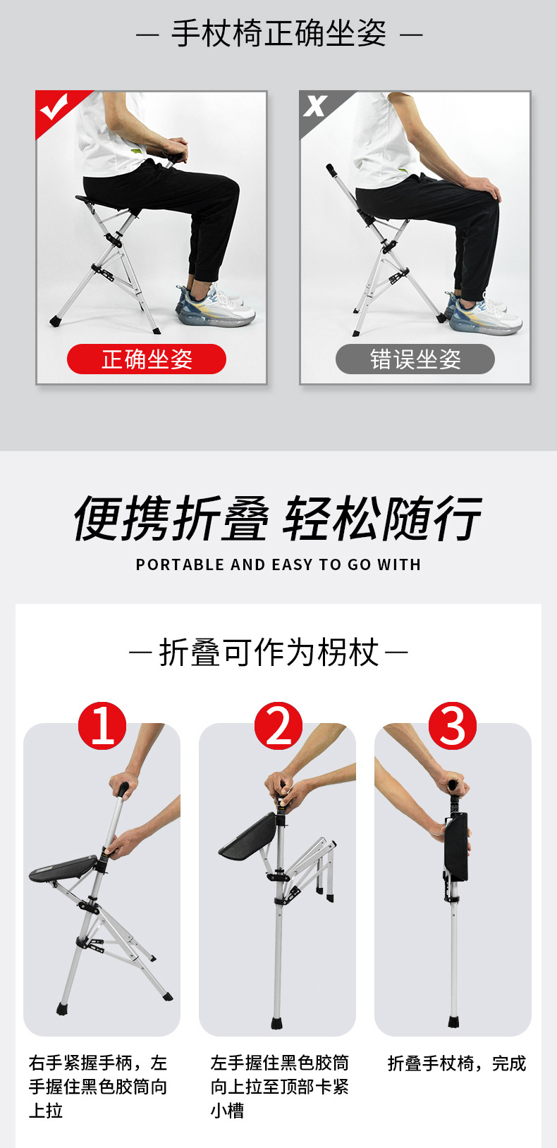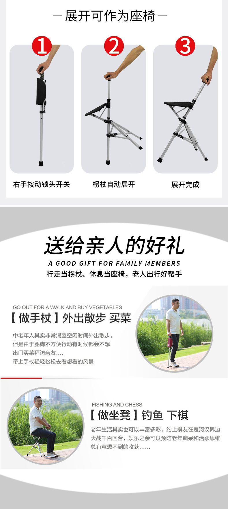 국경 간 168 접이식 지팡이 지팡이 의자 노인을위한 경량 미끄럼 방지 걷기 보조 노인 걷는 지팡이