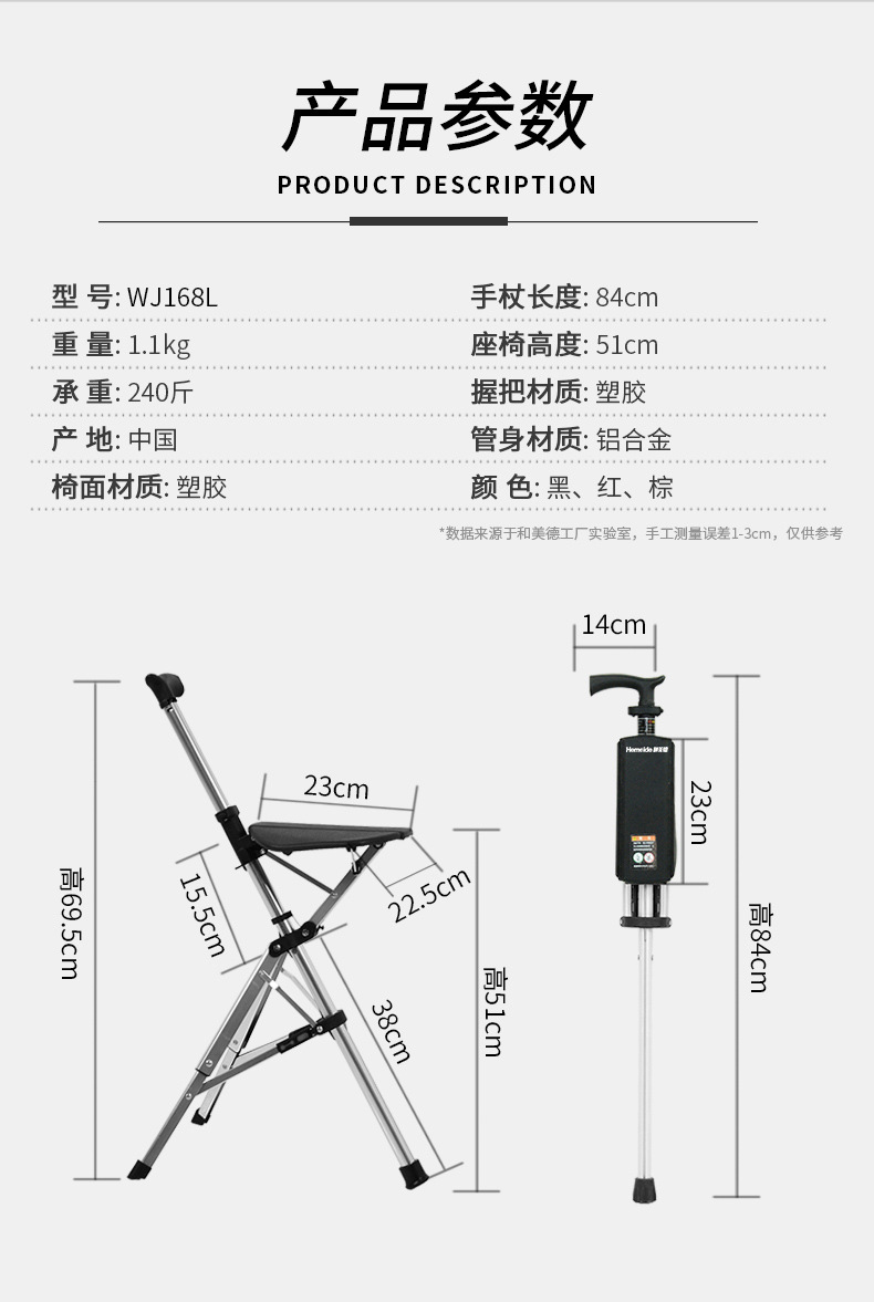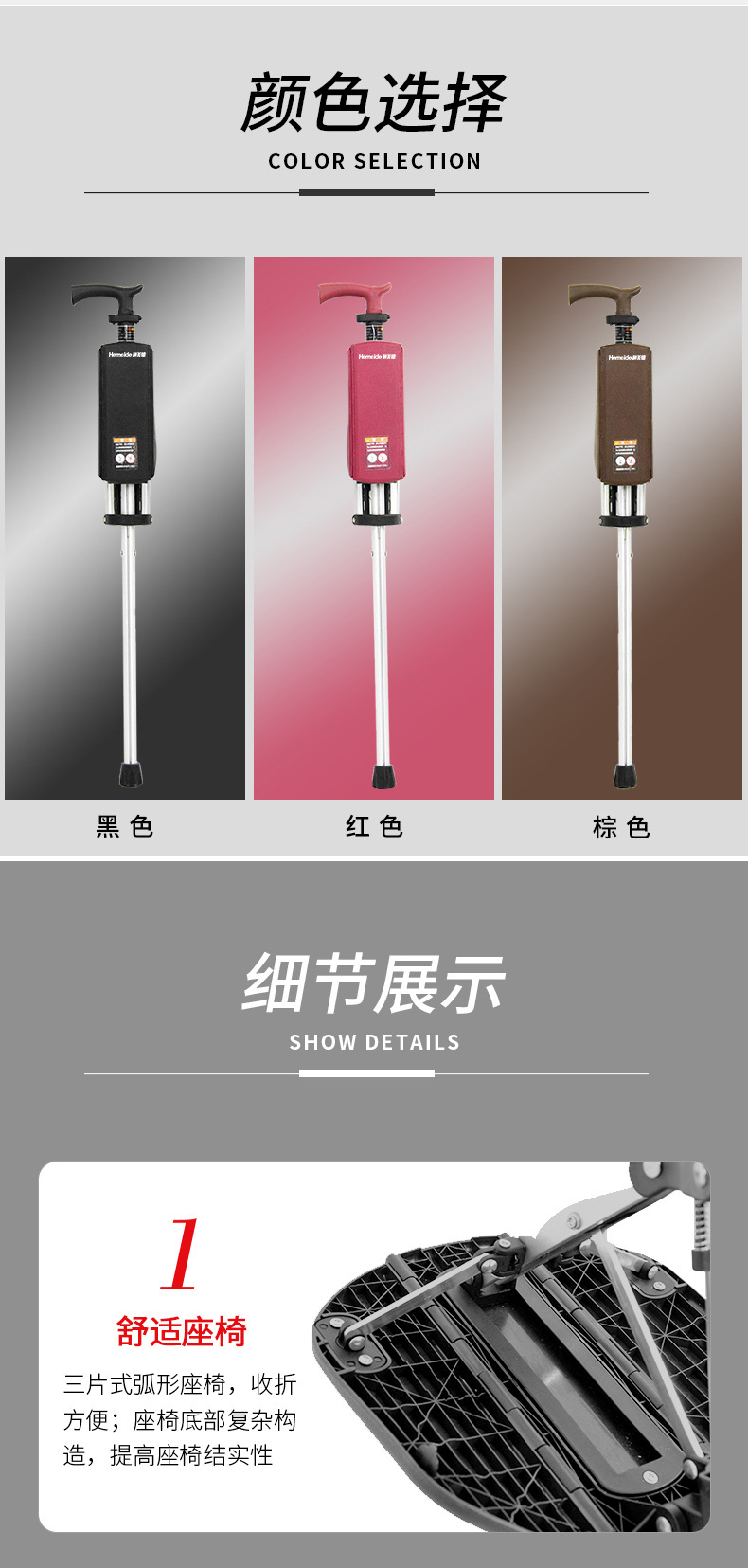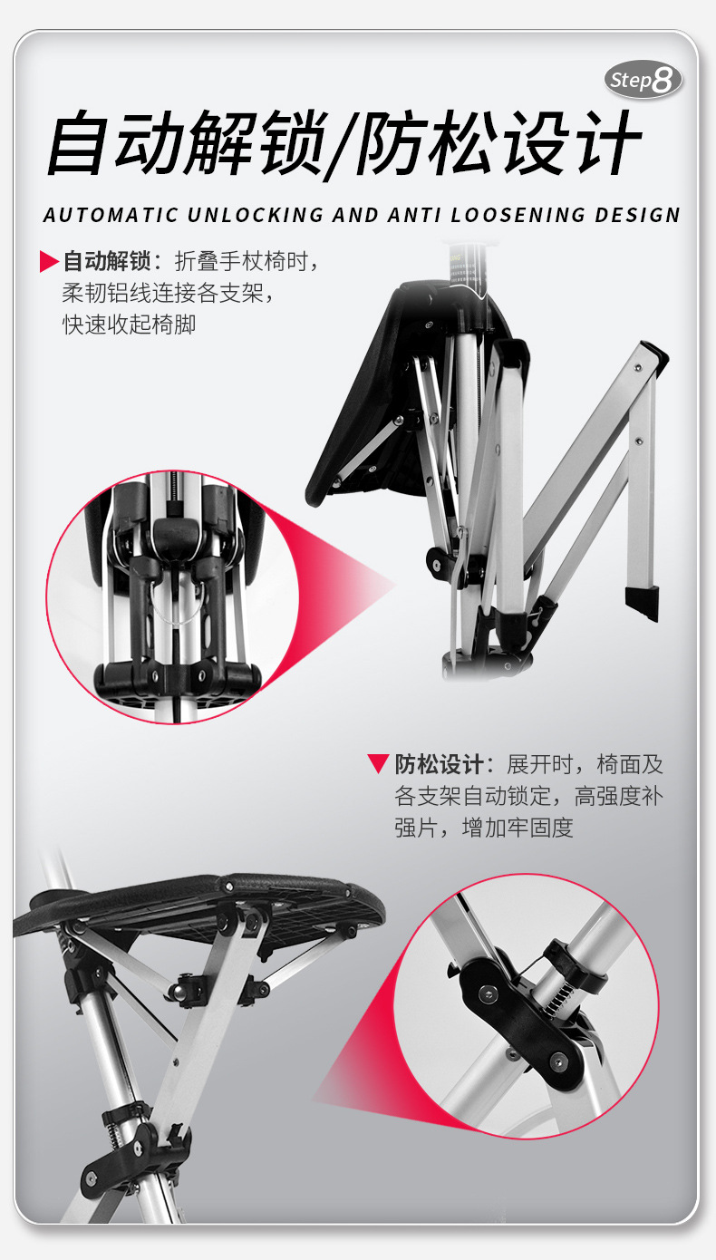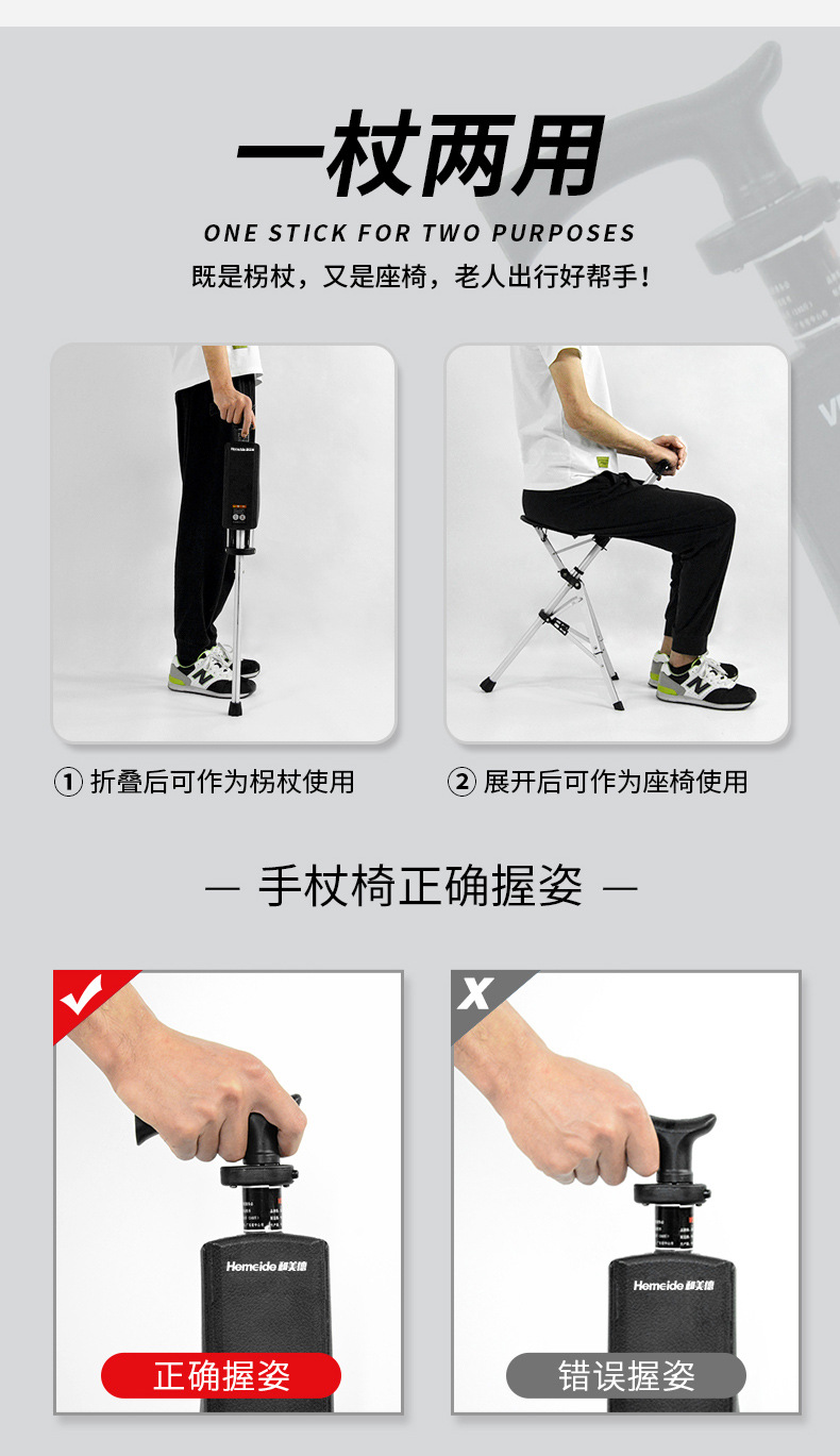 국경 간 168 접이식 지팡이 지팡이 의자 노인을위한 경량 미끄럼 방지 걷기 보조 노인 걷는 지팡이