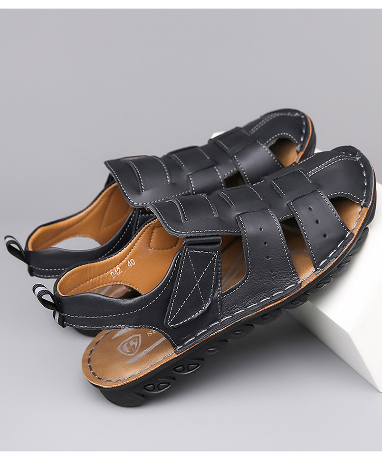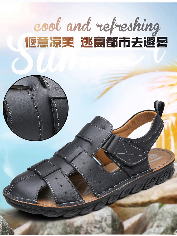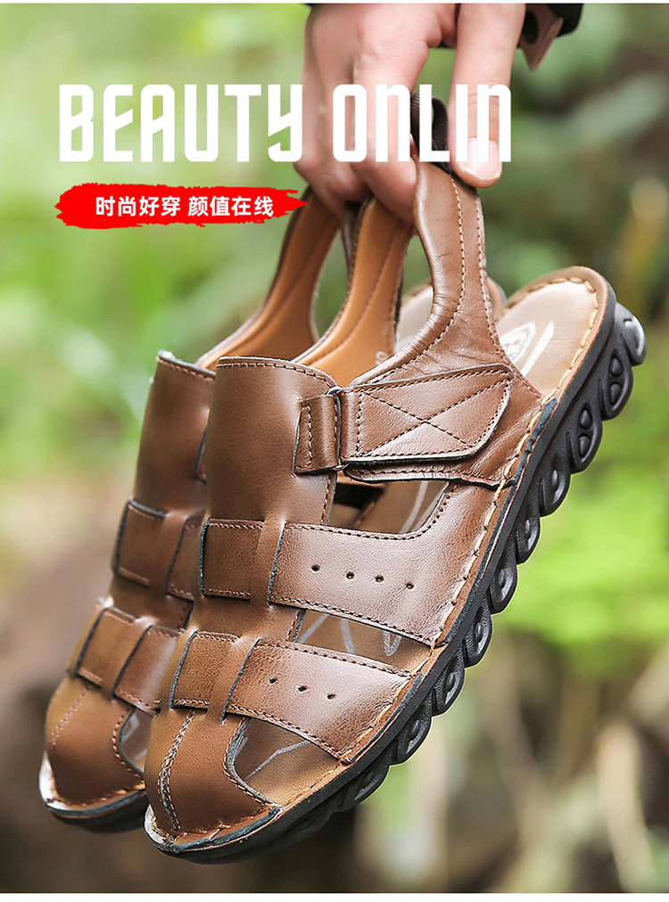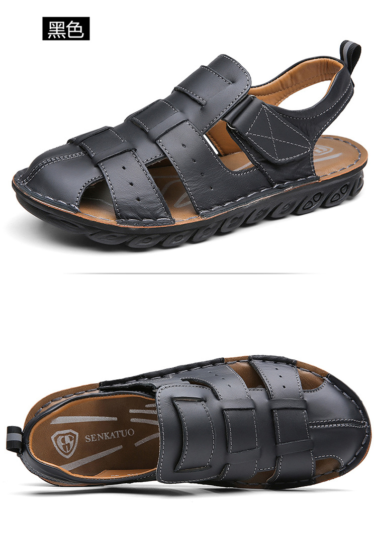 여름 국경 간 플러스 사이즈 남자 샌들 48 야외 가죽 캐주얼 비치 슈즈 남자 47 올 매치 탑 커버 남성 신발 46