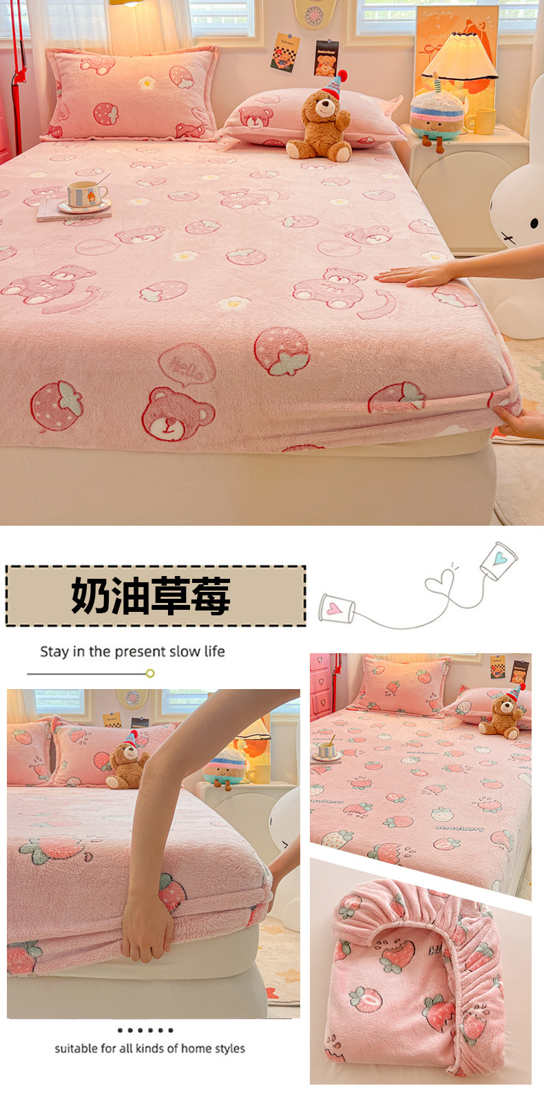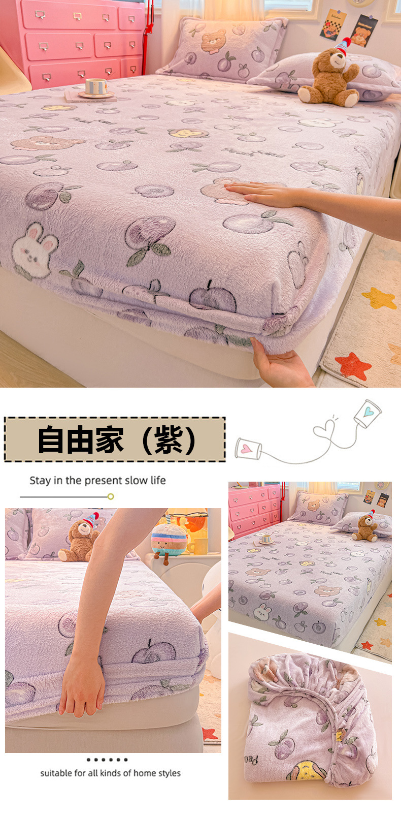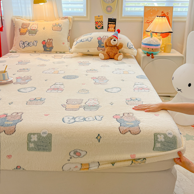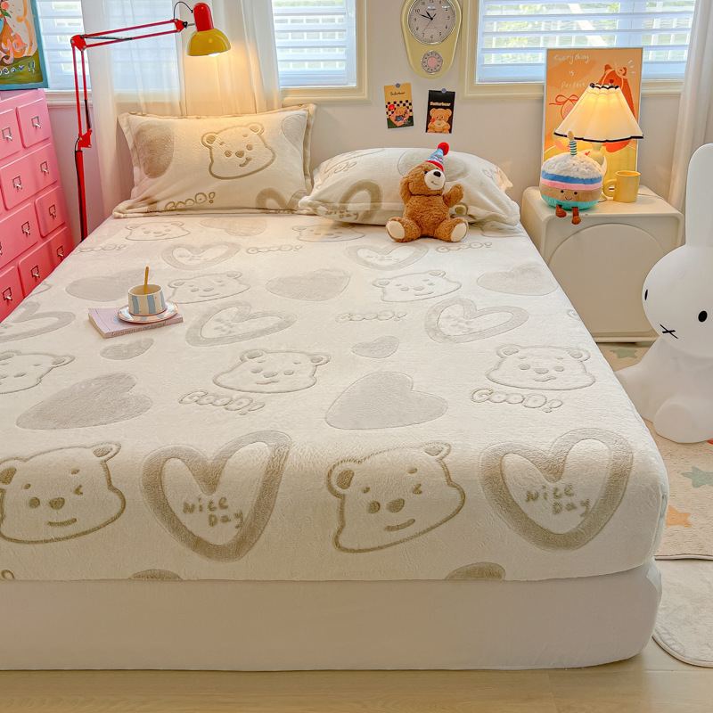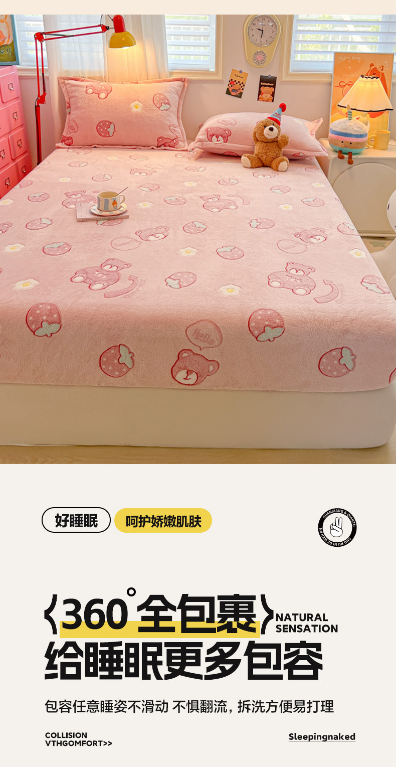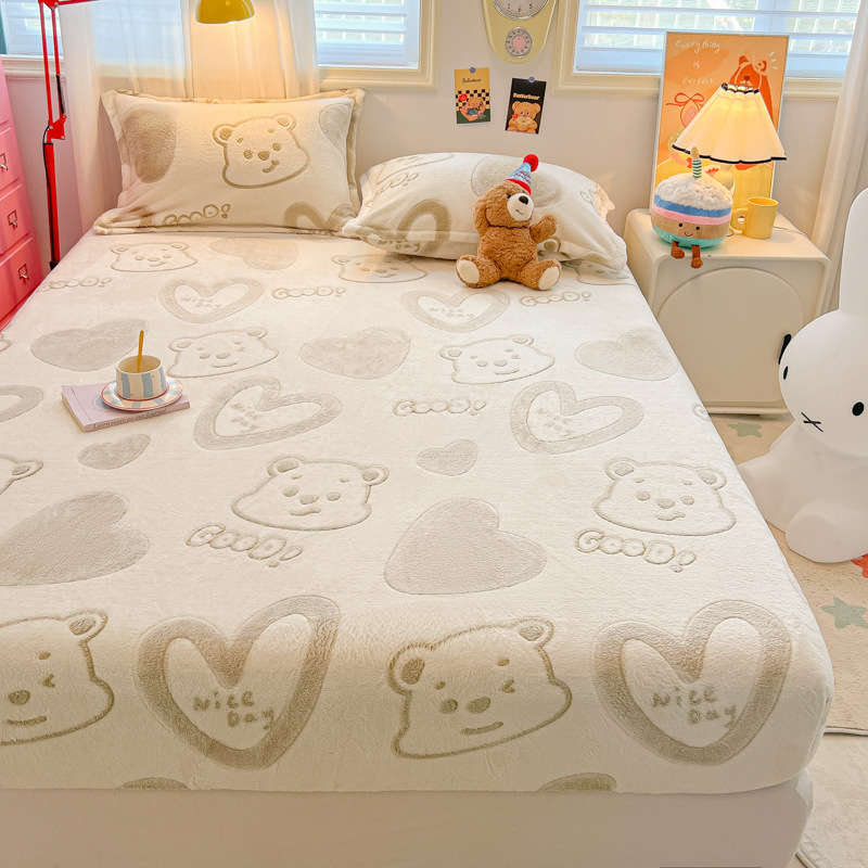 겨울 두꺼운 우유 벨벳 침대 3 조각 세트 가정용 산호 벨벳 매트리스 보호 커버 기숙사 단일 기모 침대보스토어 가기