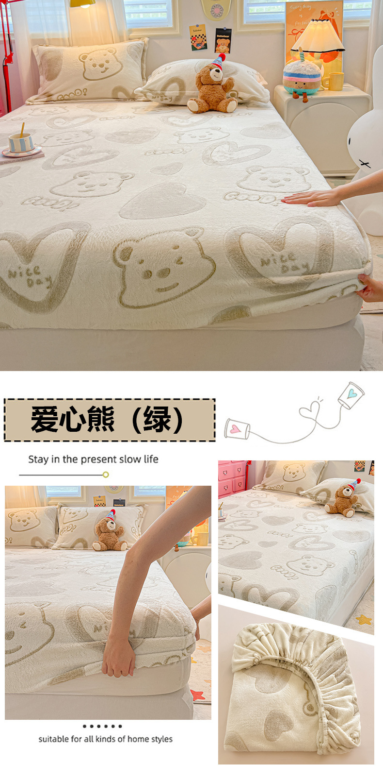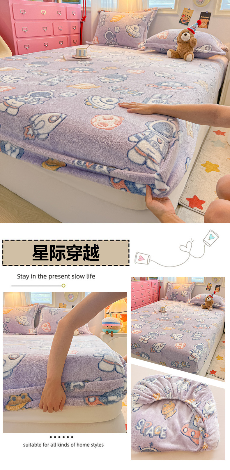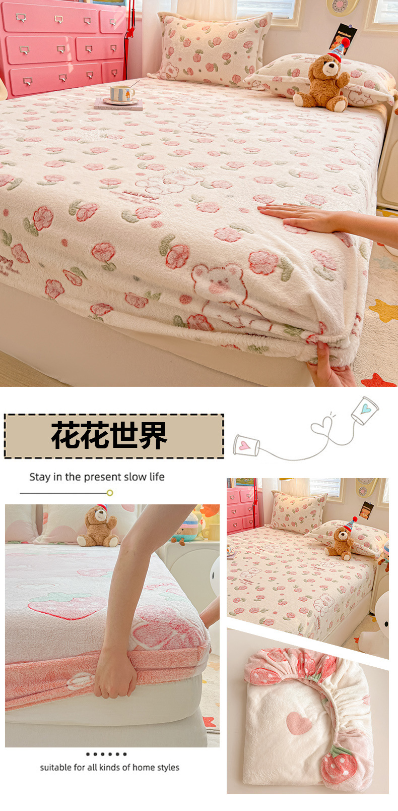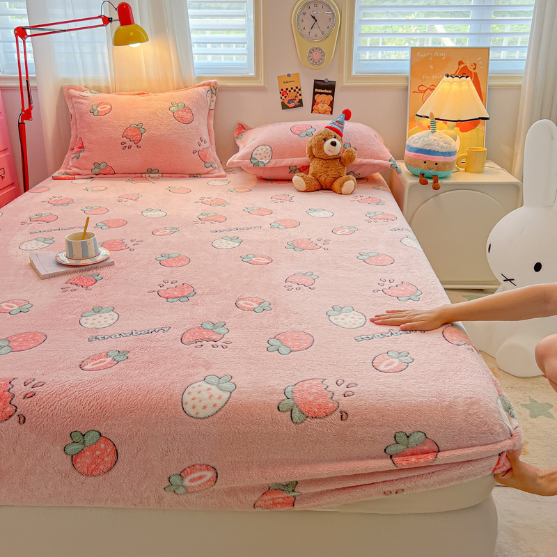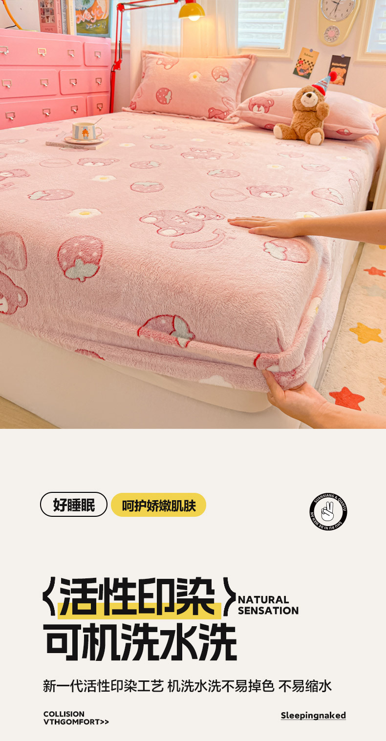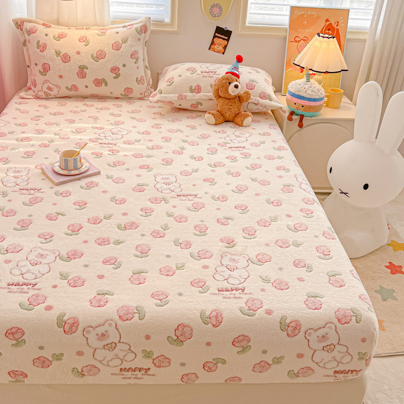 겨울 두꺼운 우유 벨벳 침대 3 조각 세트 가정용 산호 벨벳 매트리스 보호 커버 기숙사 단일 기모 침대보스토어 가기