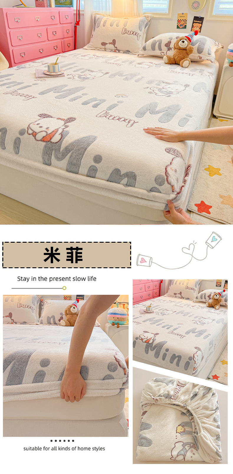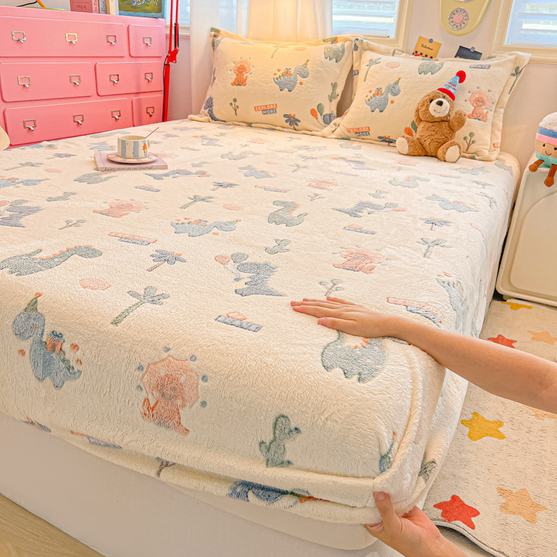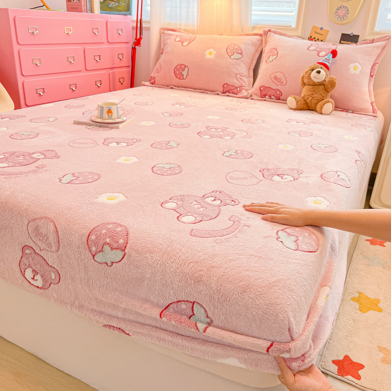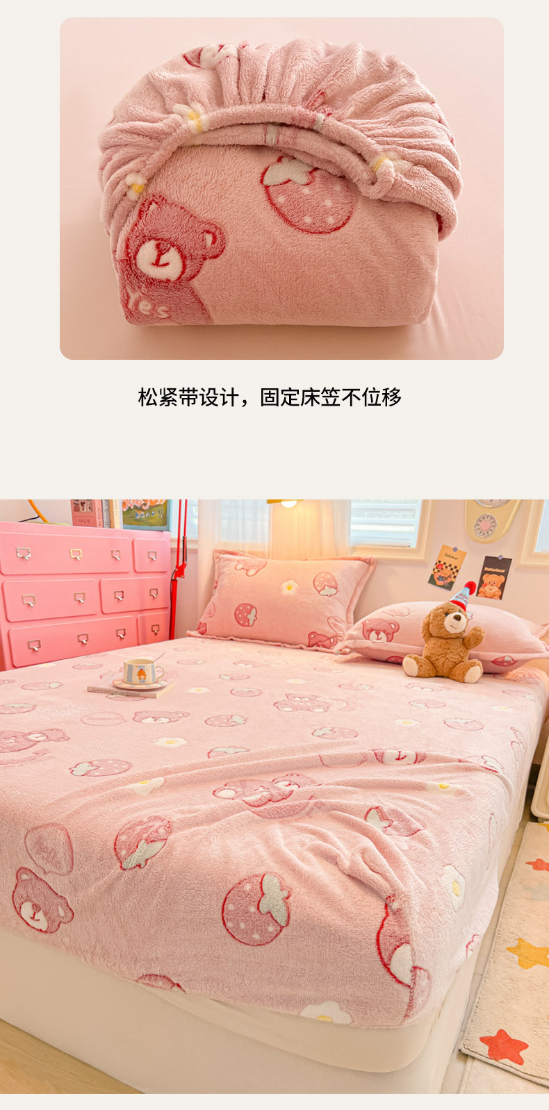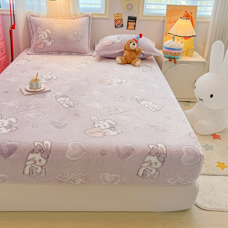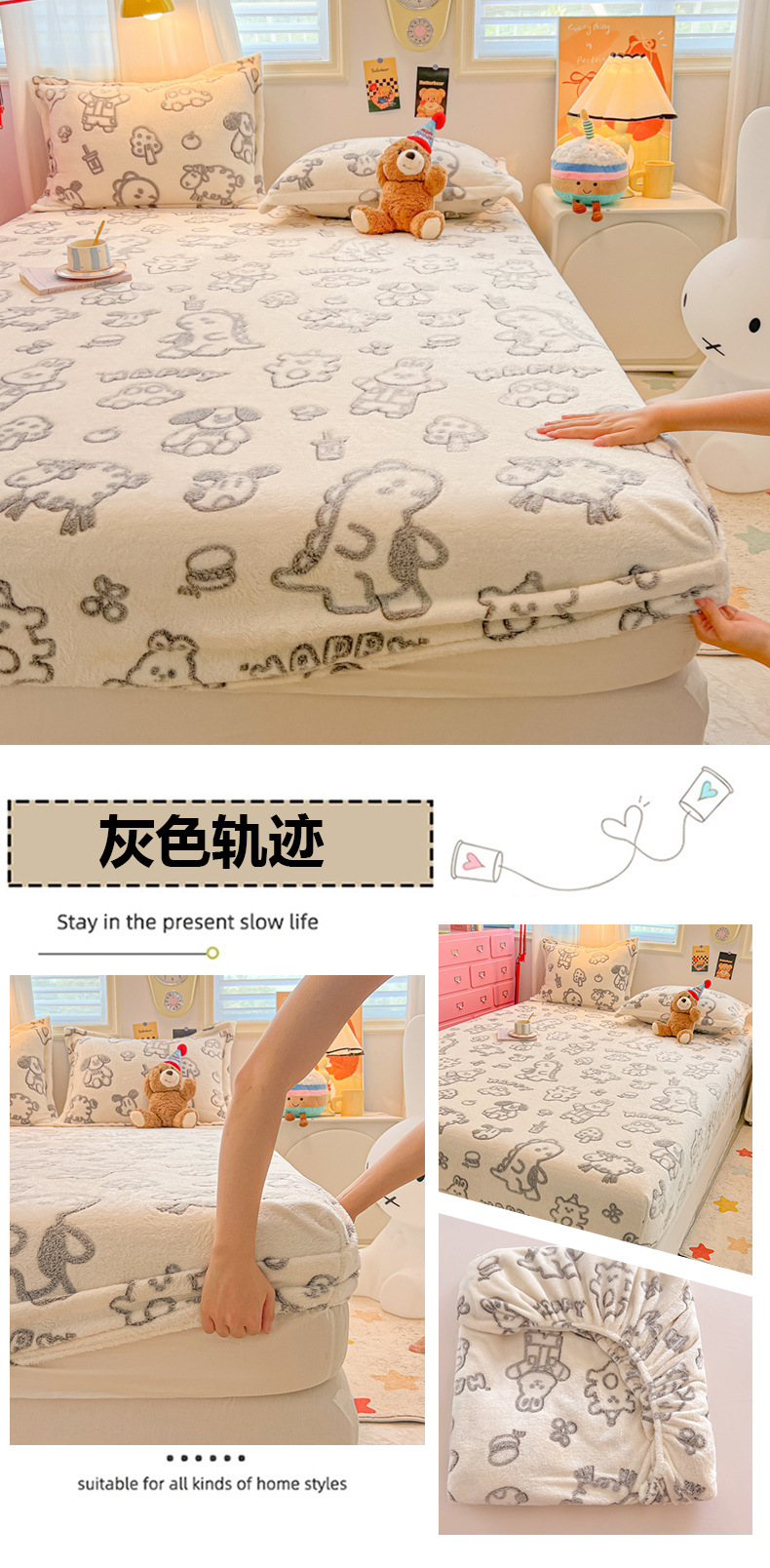 겨울 두꺼운 우유 벨벳 침대 3 조각 세트 가정용 산호 벨벳 매트리스 보호 커버 기숙사 단일 기모 침대보스토어 가기