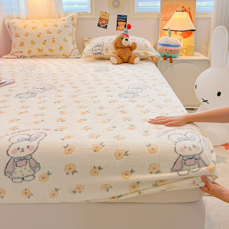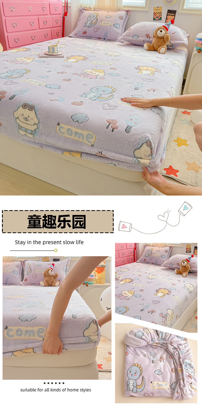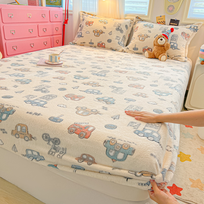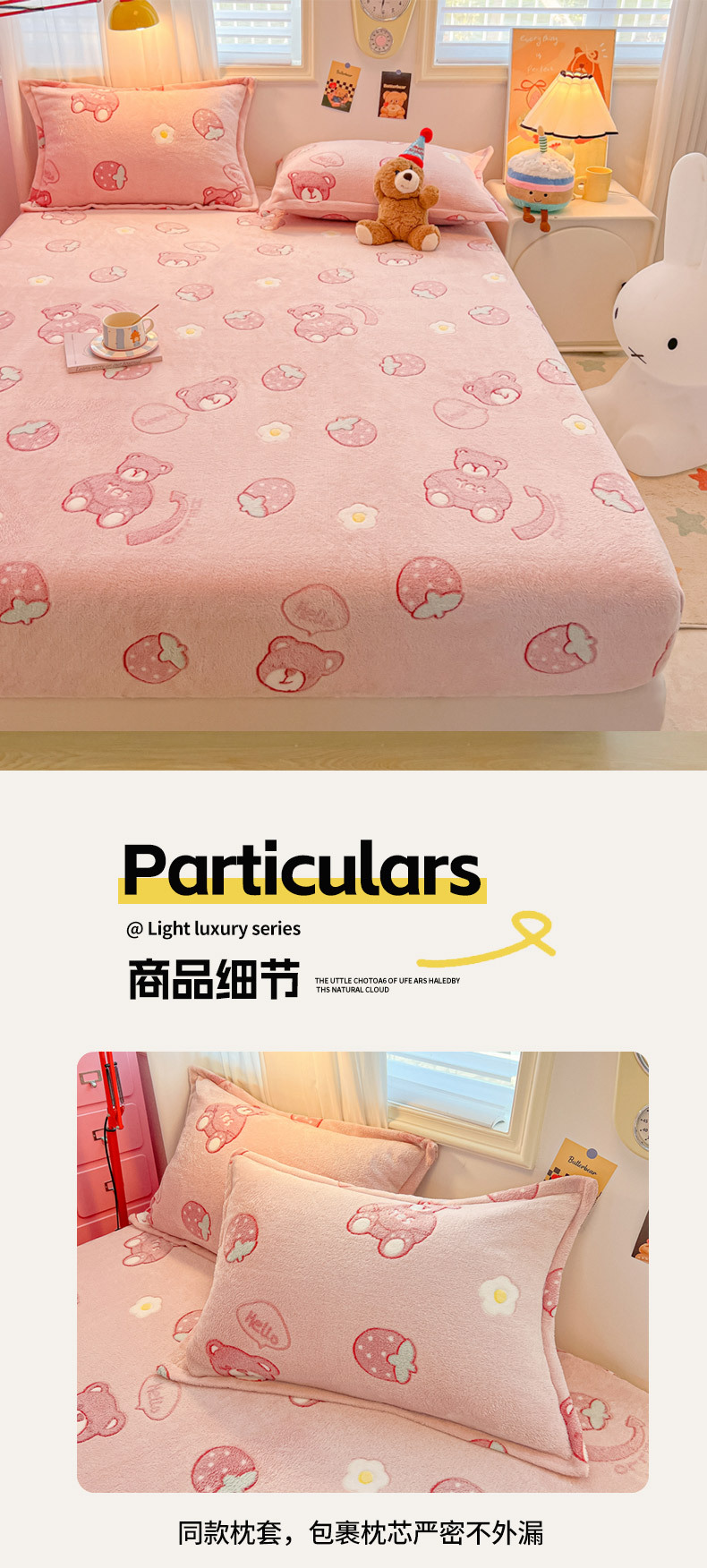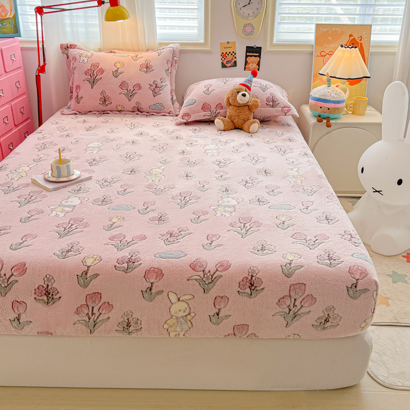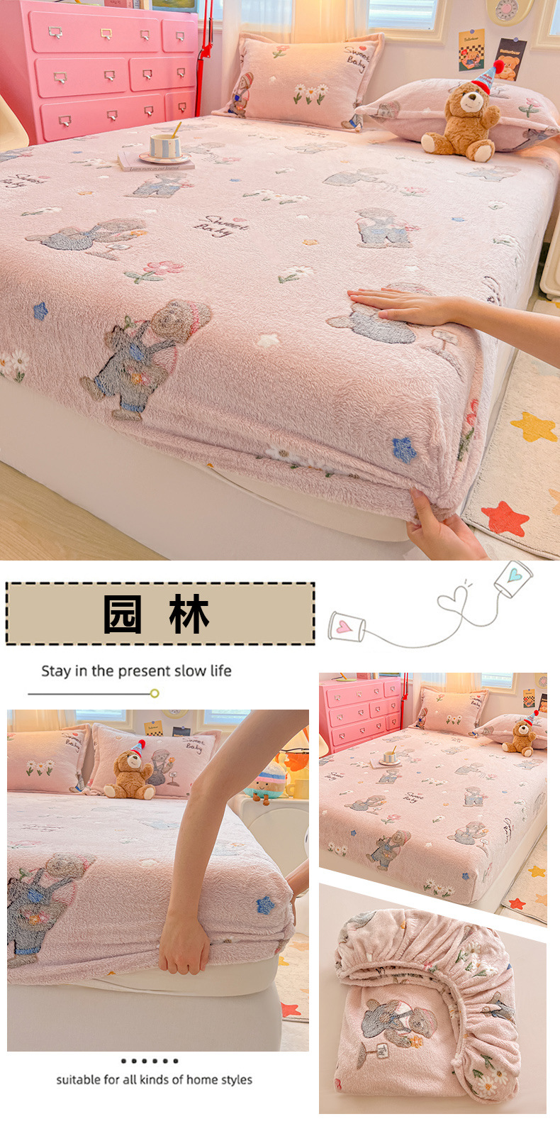 겨울 두꺼운 우유 벨벳 침대 3 조각 세트 가정용 산호 벨벳 매트리스 보호 커버 기숙사 단일 기모 침대보스토어 가기