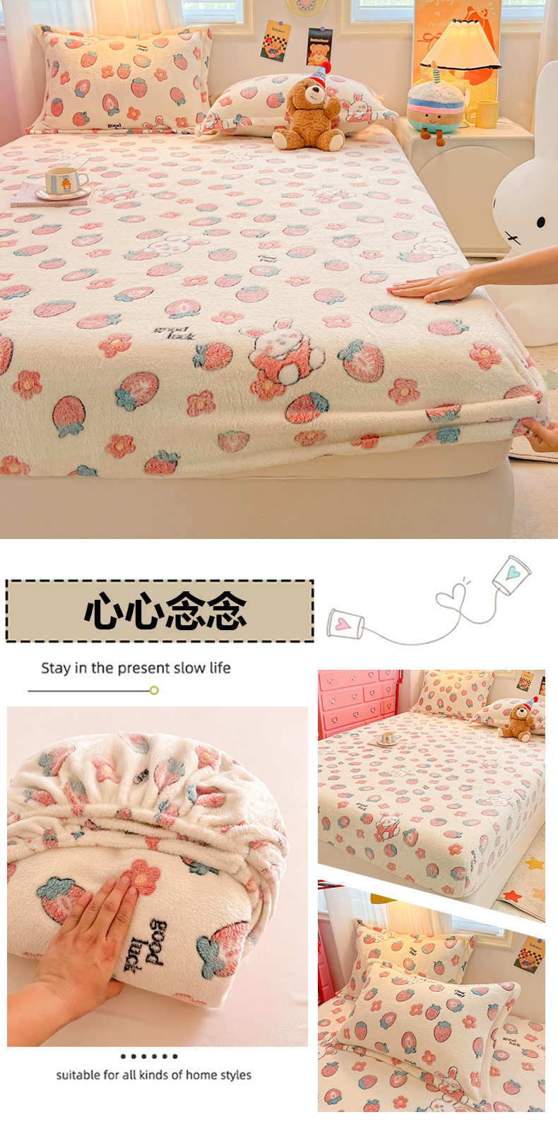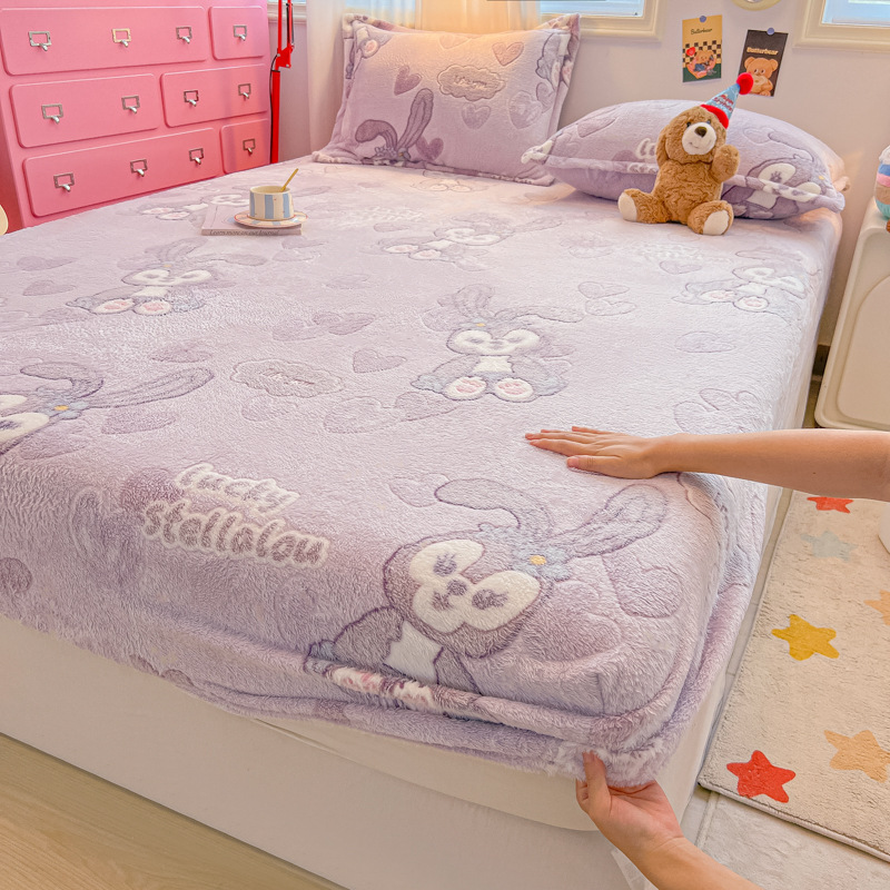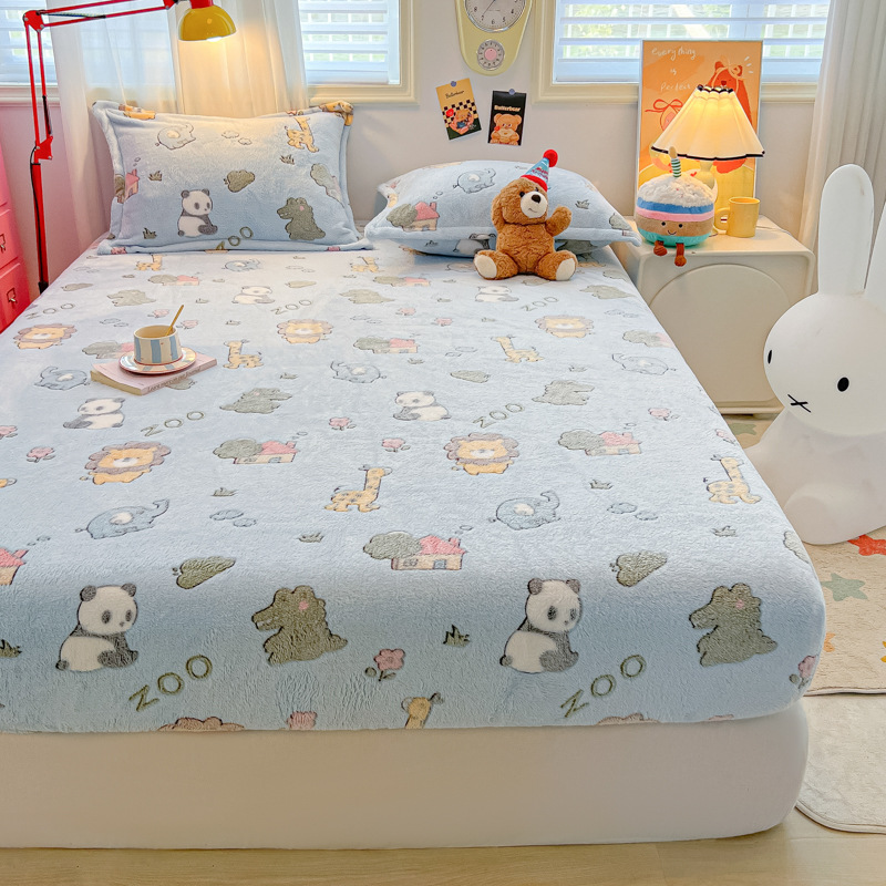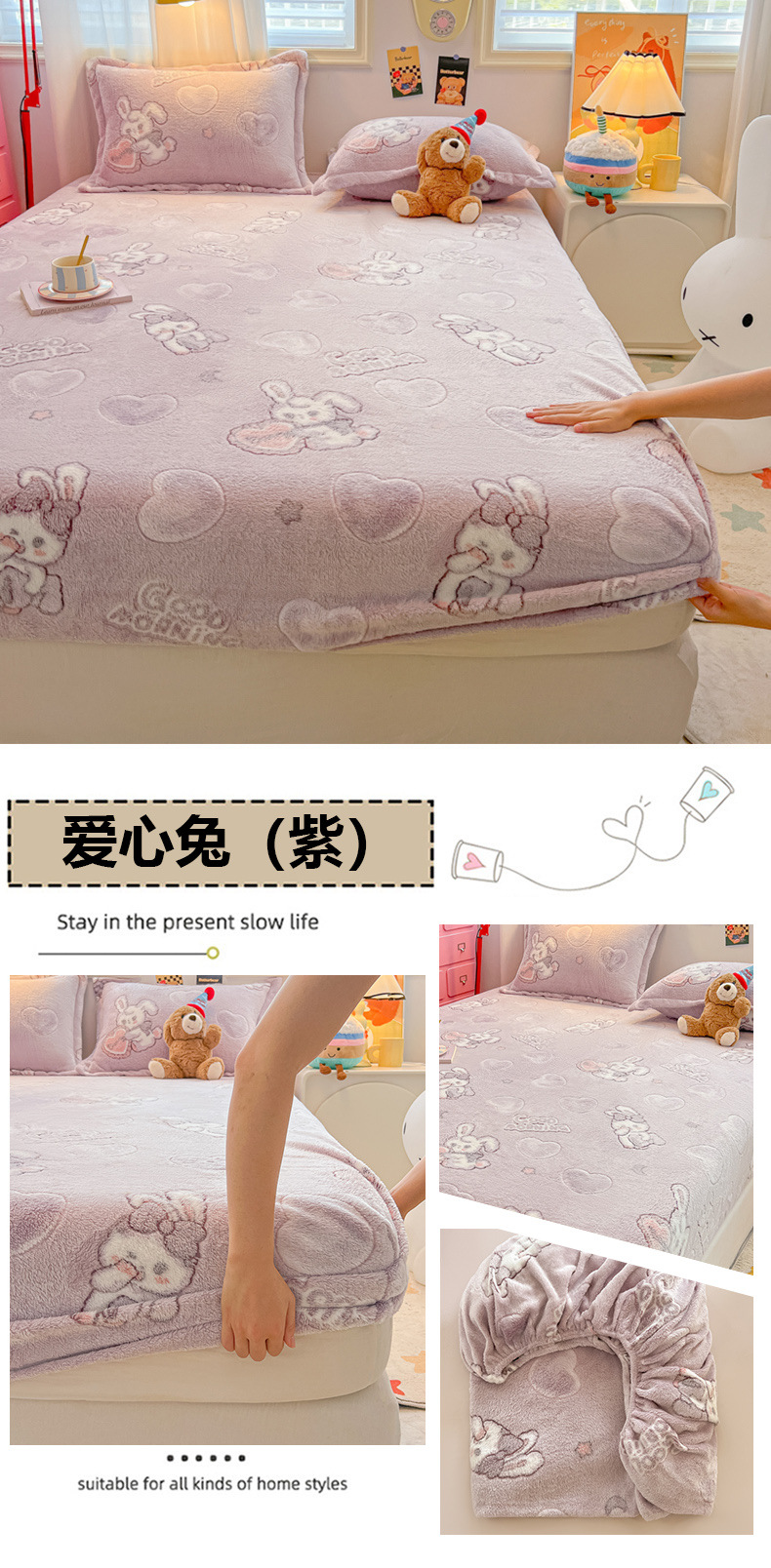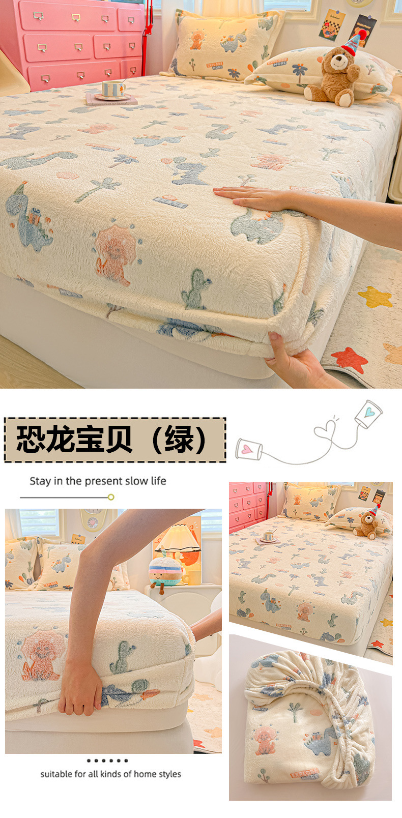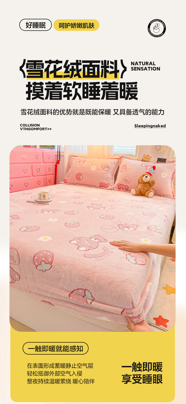 겨울 두꺼운 우유 벨벳 침대 3 조각 세트 가정용 산호 벨벳 매트리스 보호 커버 기숙사 단일 기모 침대보스토어 가기