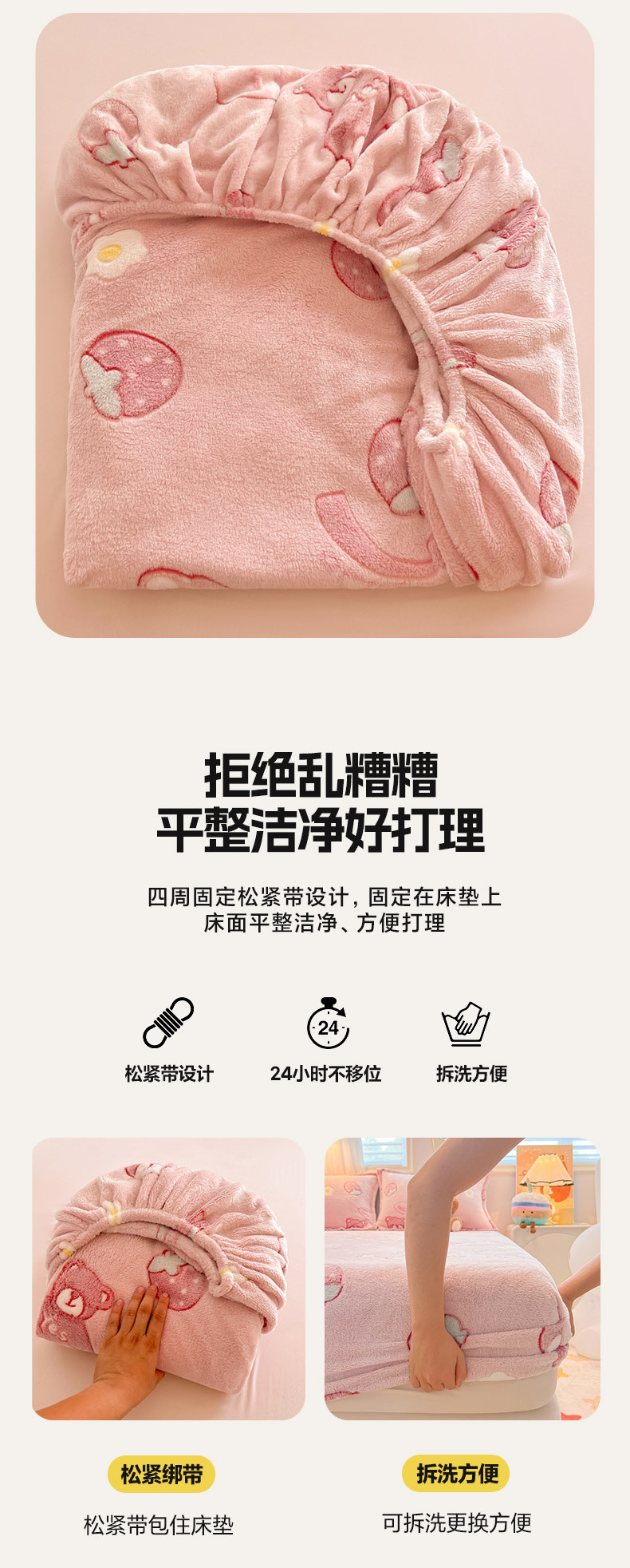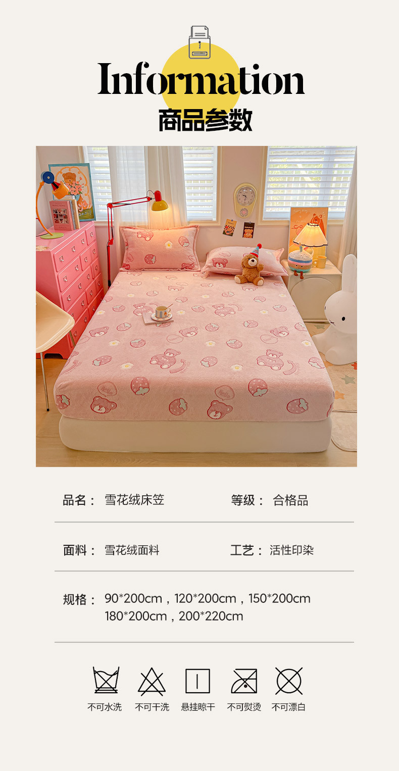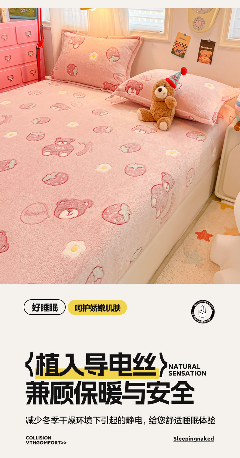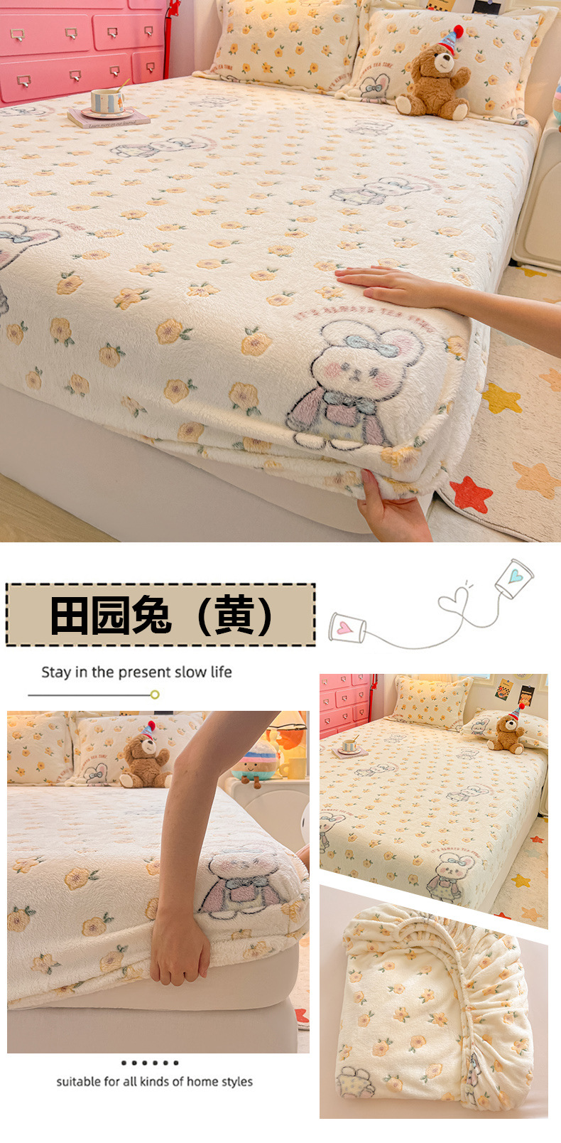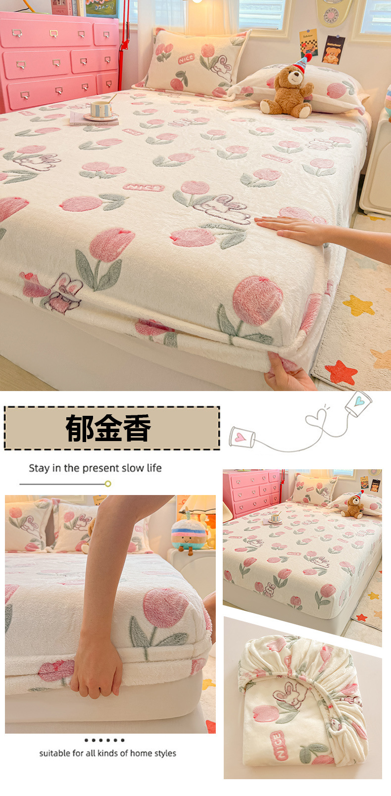 겨울 두꺼운 우유 벨벳 침대 3 조각 세트 가정용 산호 벨벳 매트리스 보호 커버 기숙사 단일 기모 침대보스토어 가기