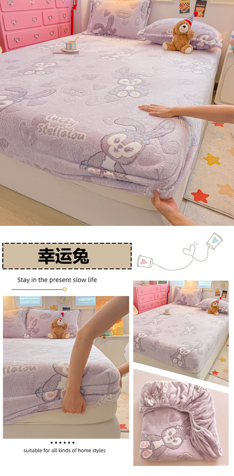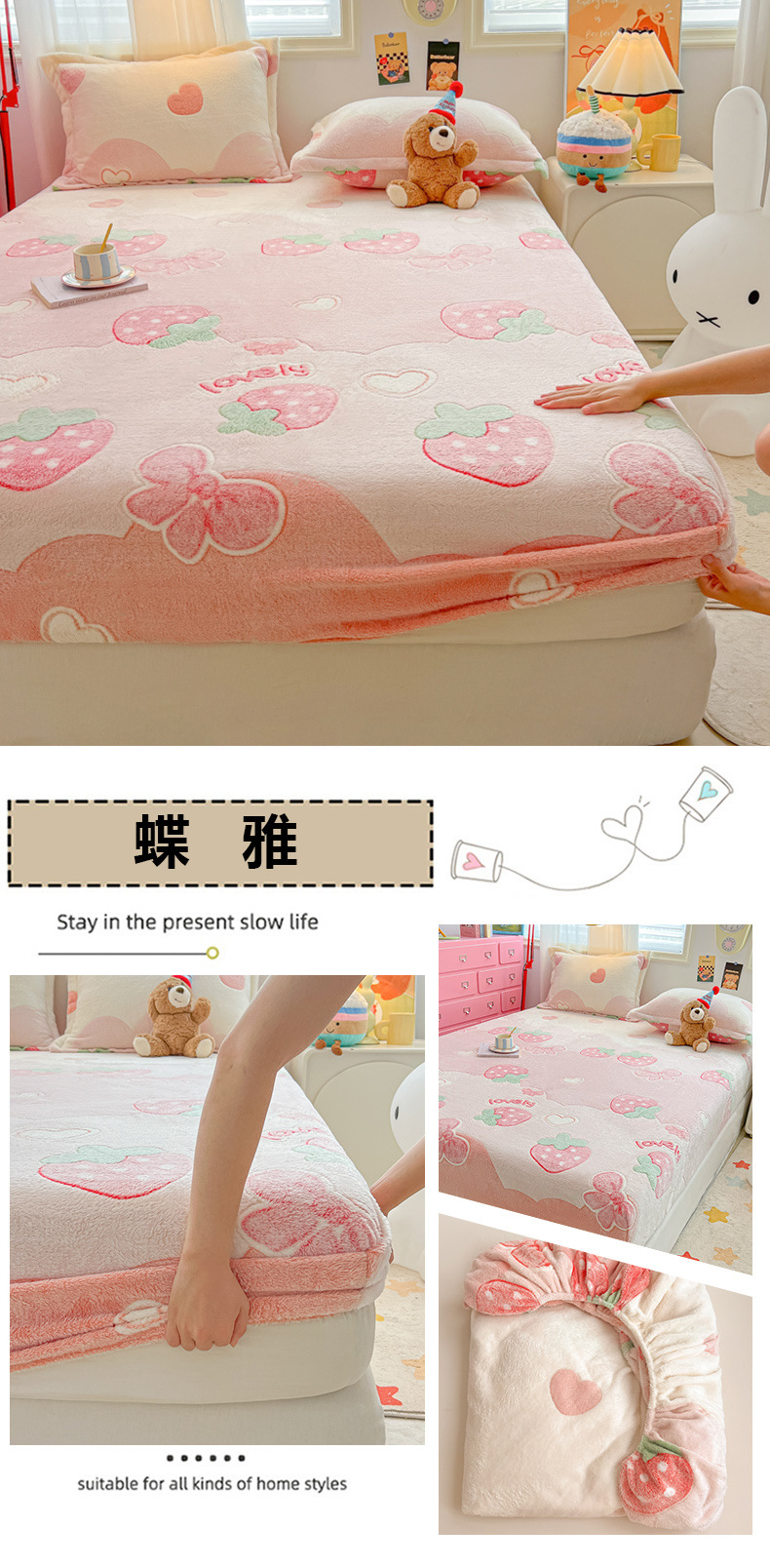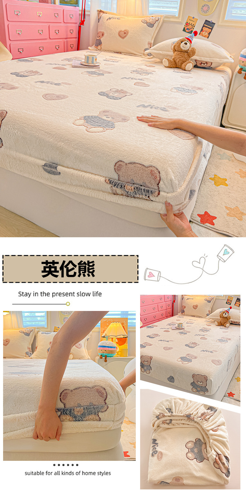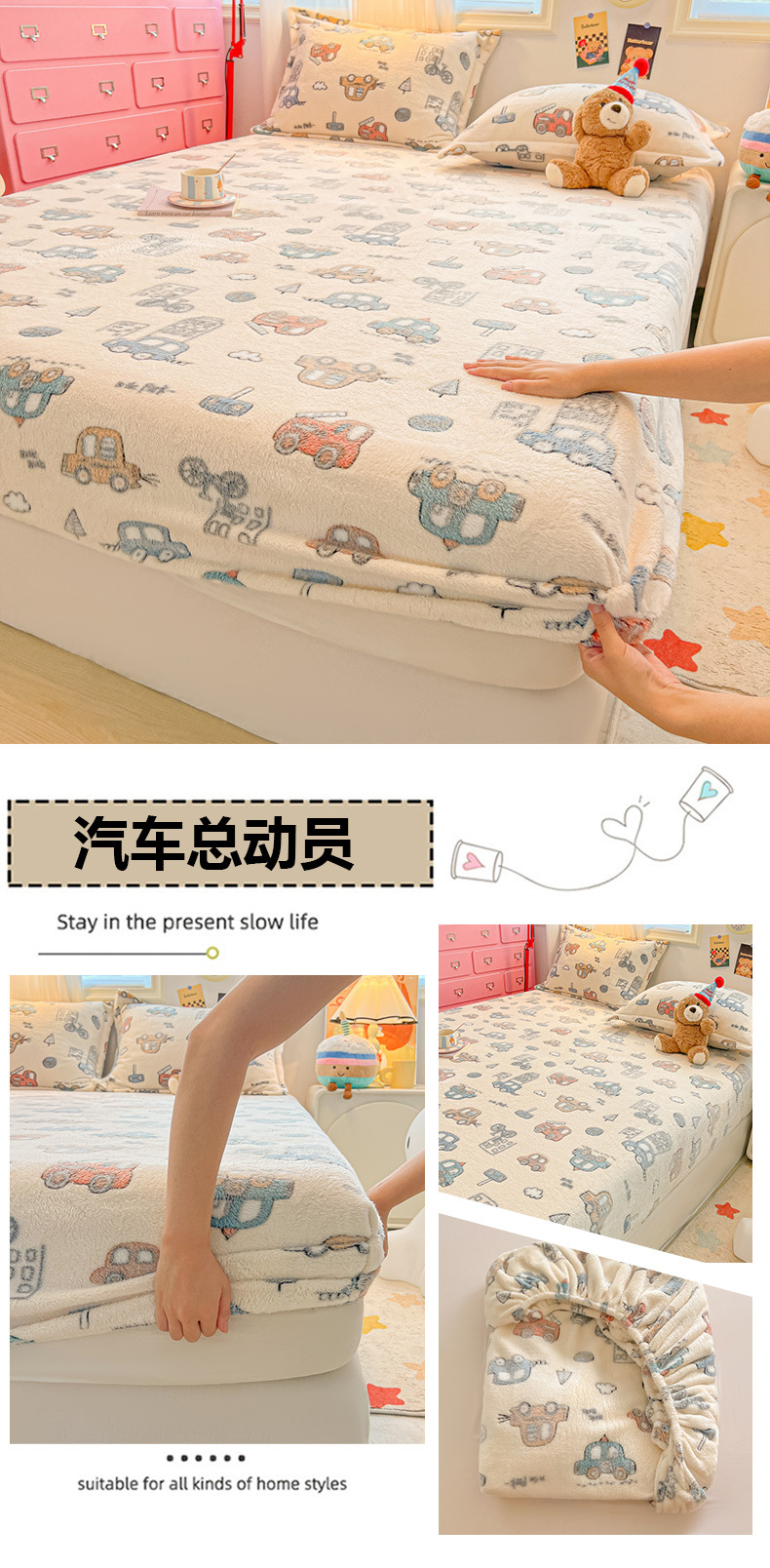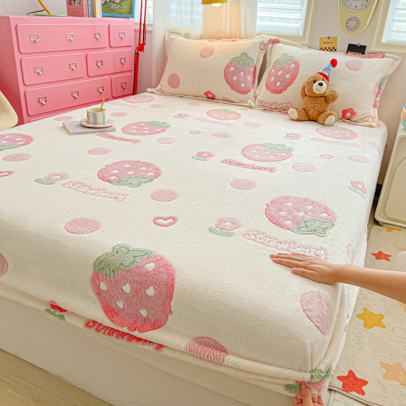겨울 두꺼운 우유 벨벳 침대 3 조각 세트 가정용 산호 벨벳 매트리스 보호 커버 기숙사 단일 기모 침대보스토어 가기