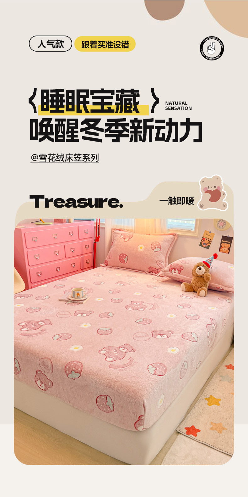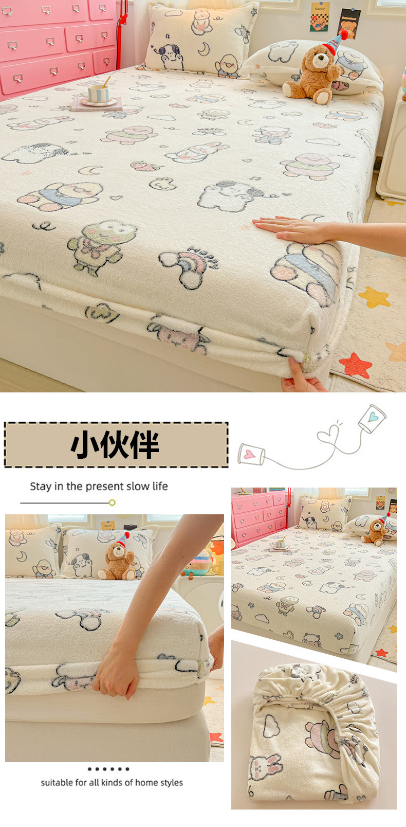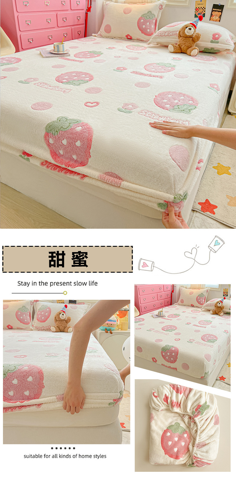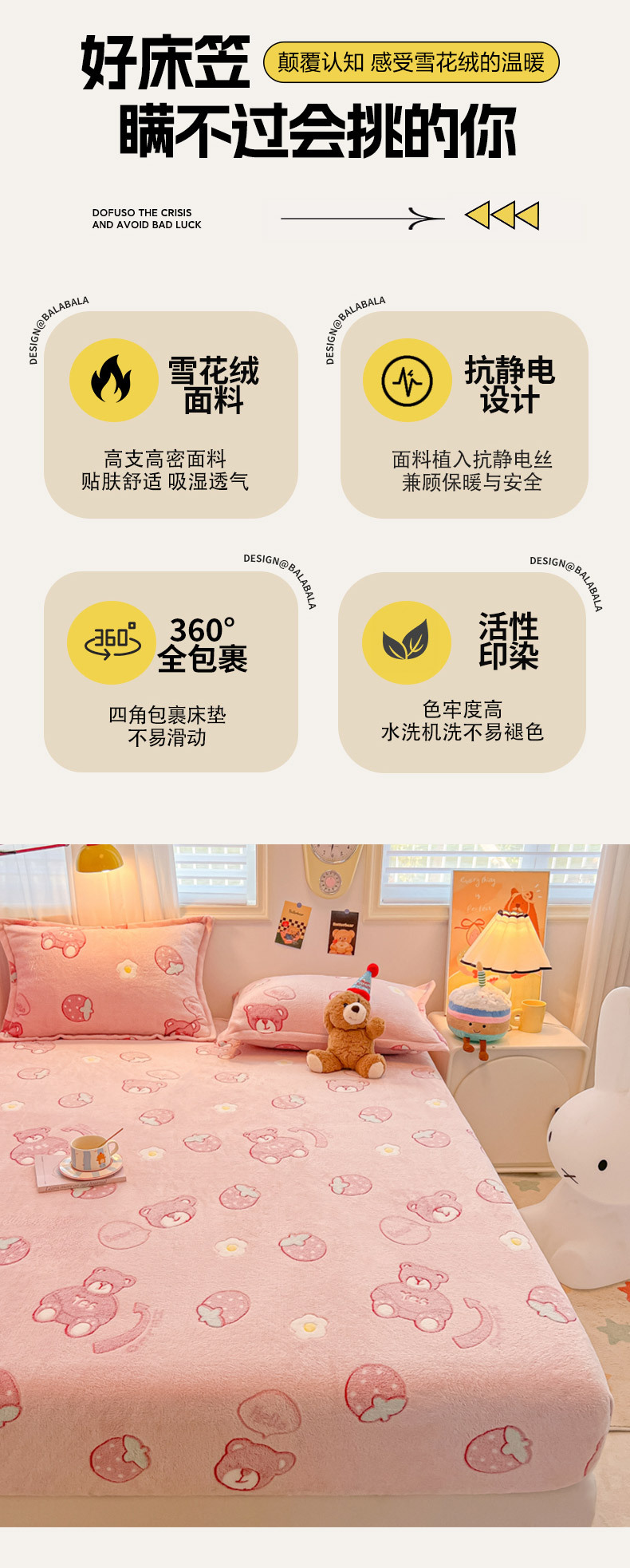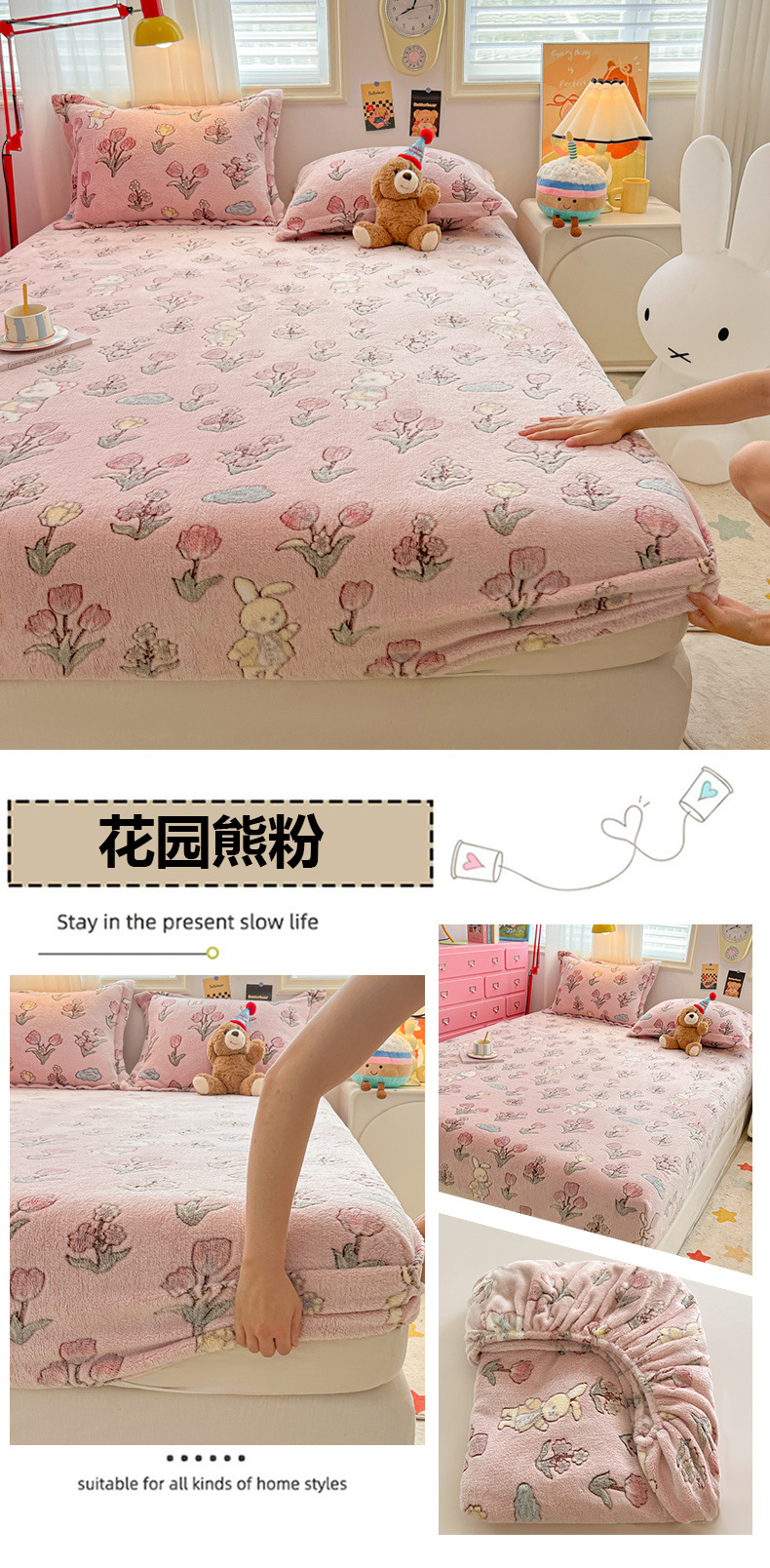 겨울 두꺼운 우유 벨벳 침대 3 조각 세트 가정용 산호 벨벳 매트리스 보호 커버 기숙사 단일 기모 침대보스토어 가기