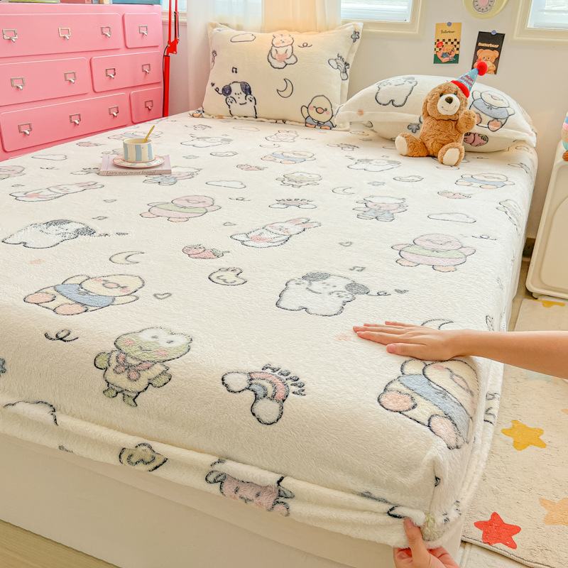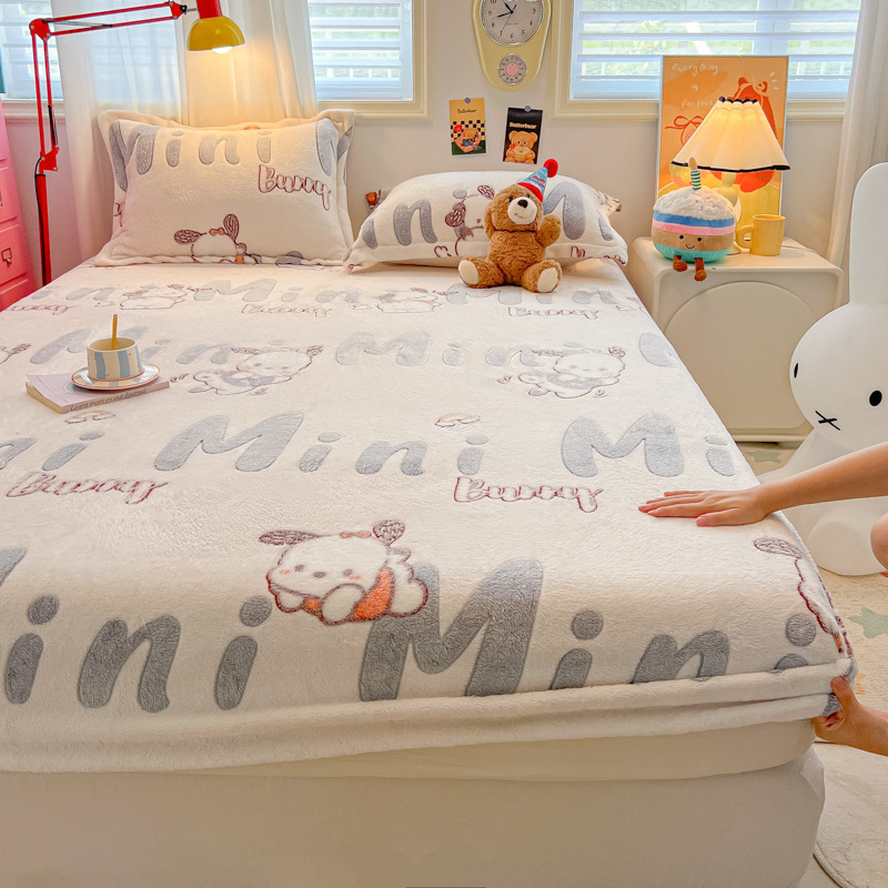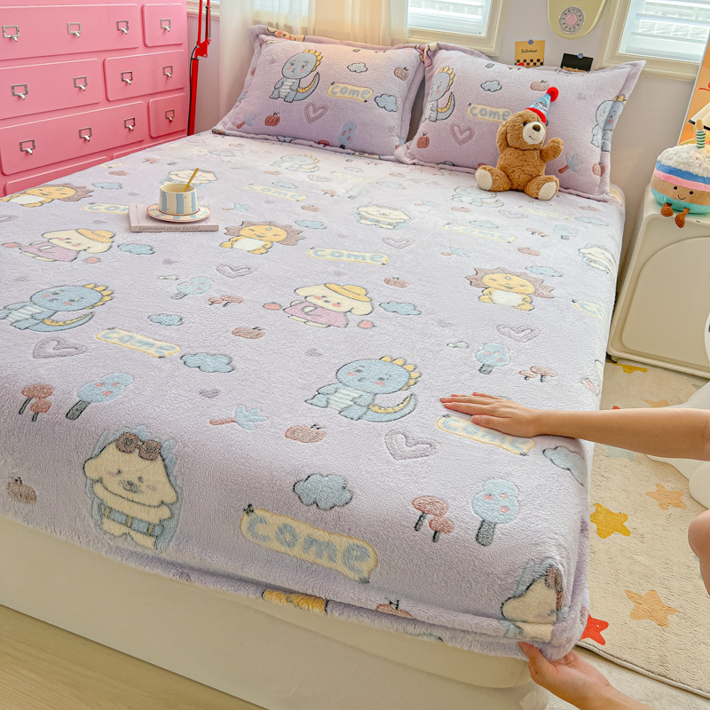 겨울 두꺼운 우유 벨벳 침대 3 조각 세트 가정용 산호 벨벳 매트리스 보호 커버 기숙사 단일 기모 침대보