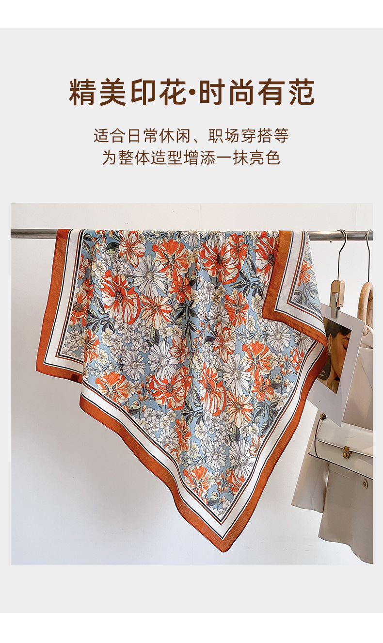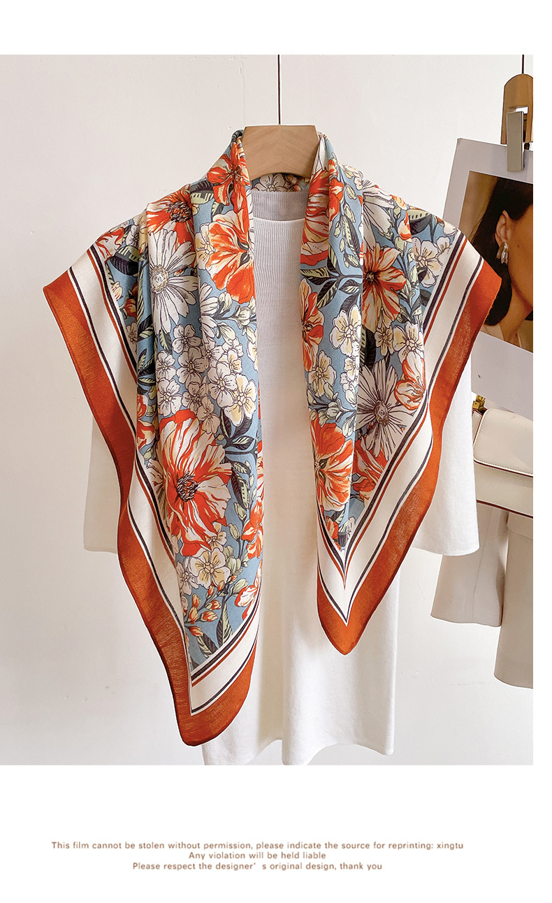 고급 봄 얇은 유화 꽃 인쇄 실크 스카프 여성 올 매치 선 스크린 코튼 90 스퀘어 스카프 목도리스토어 가기