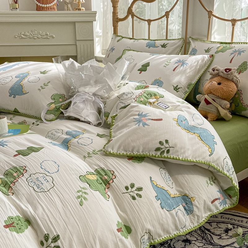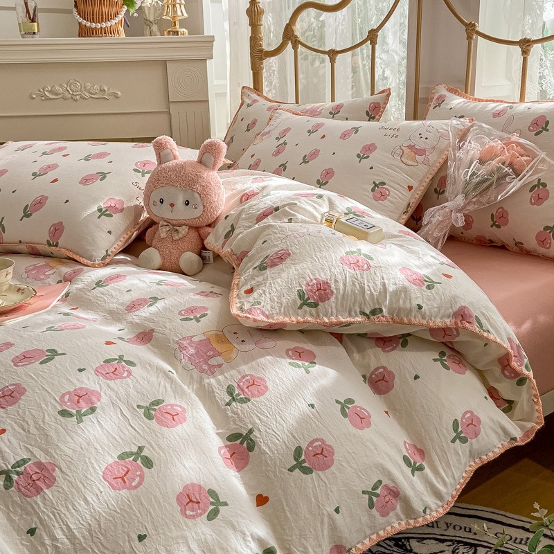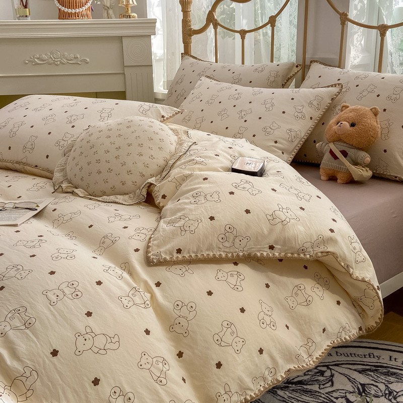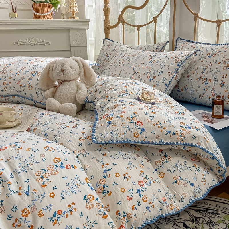 원사 염색 워시 면 더블 원사 린넨 4 피스 침대 시트 퀼트 커버 침구 선물 도매