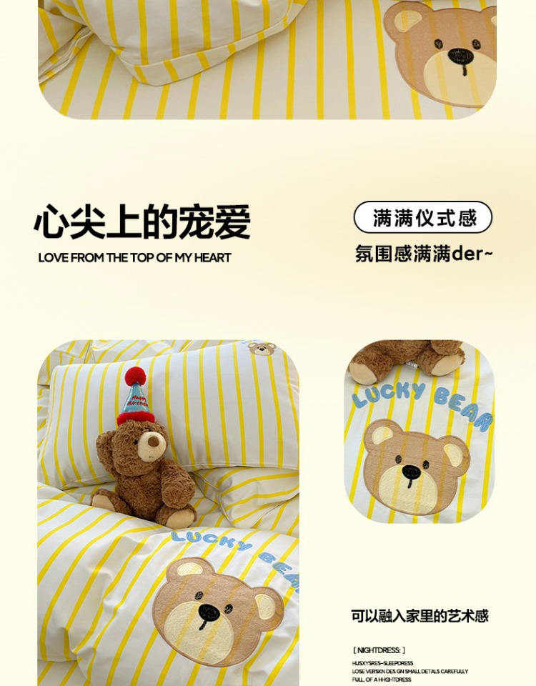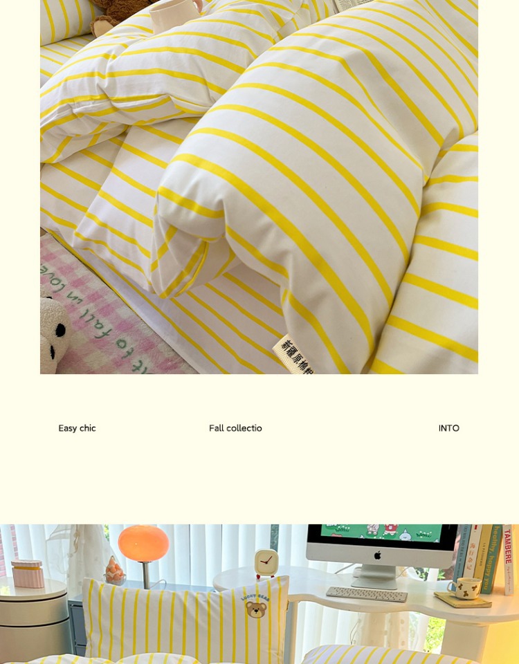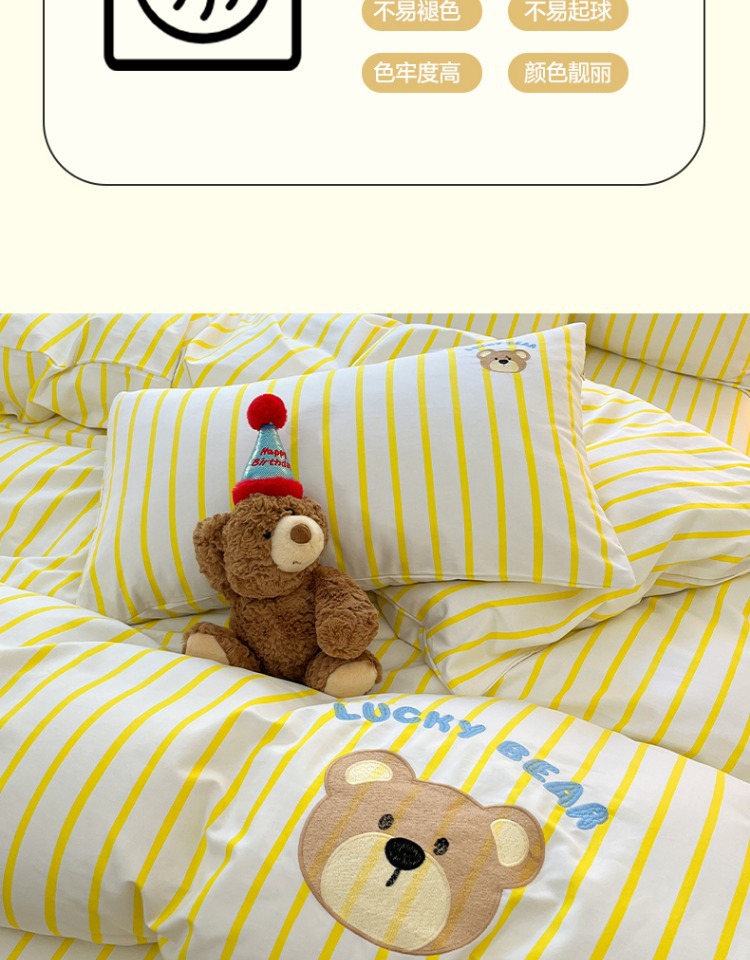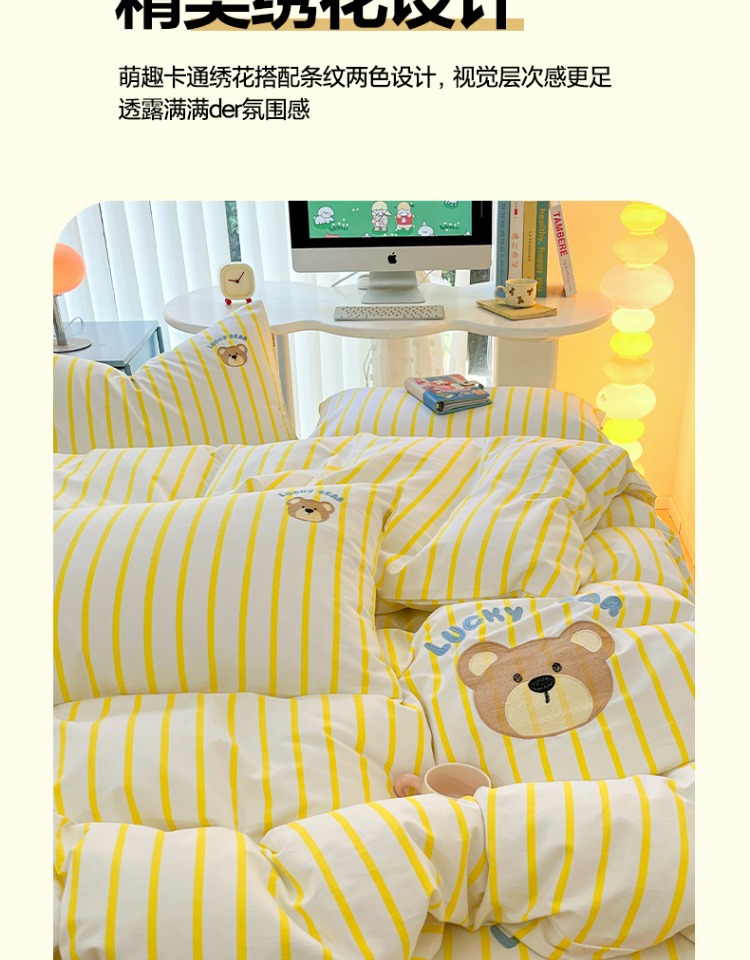 여름 귀여운 만화 면 오래 된 거친 천 침대 4 조각 세트 100 면 침대 시트 퀼트 커버 2025 새로운 스타일 침구스토어 가기